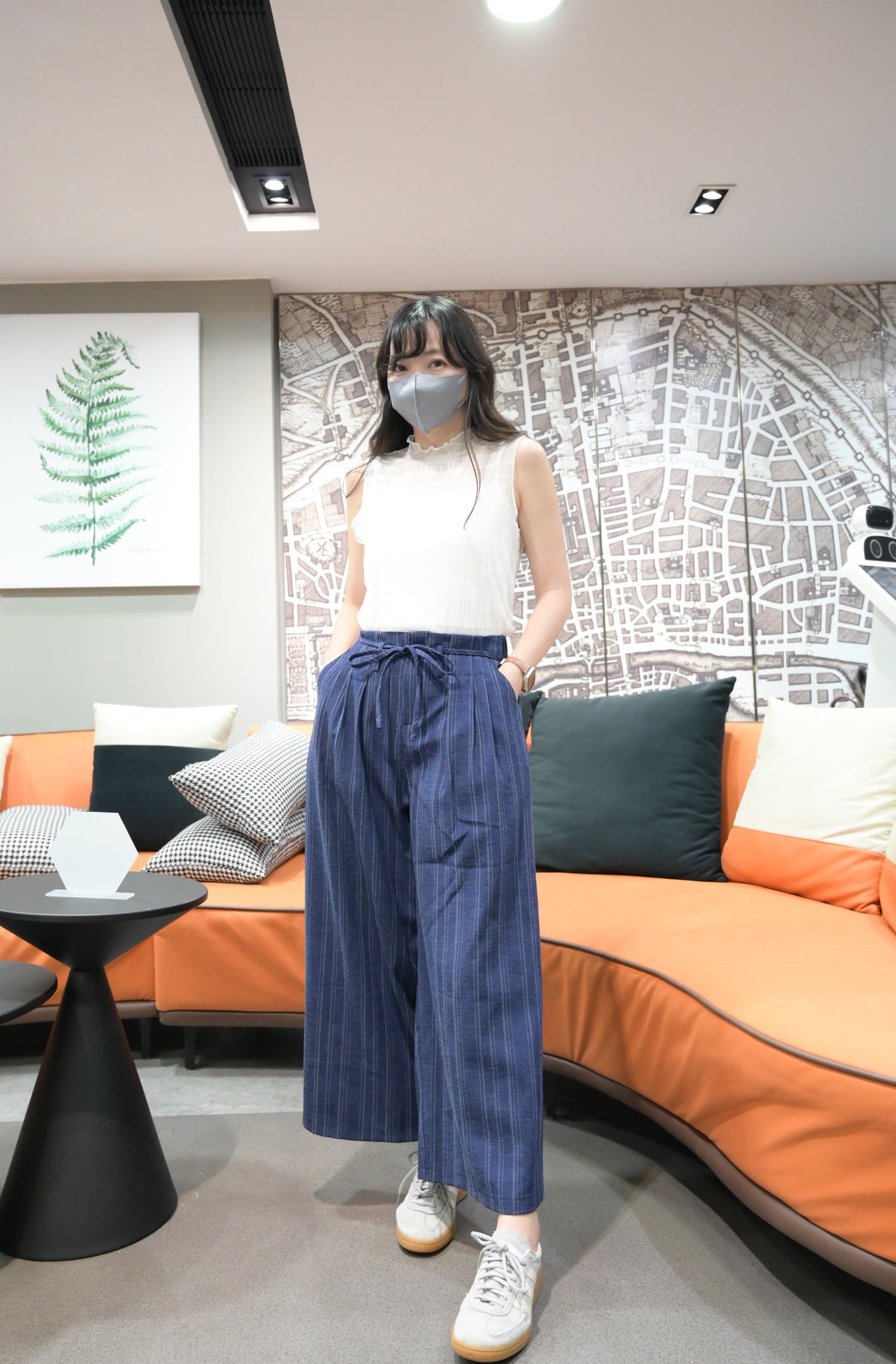 夏季・暗條紋褶邊九分褲 2色入 1S20338