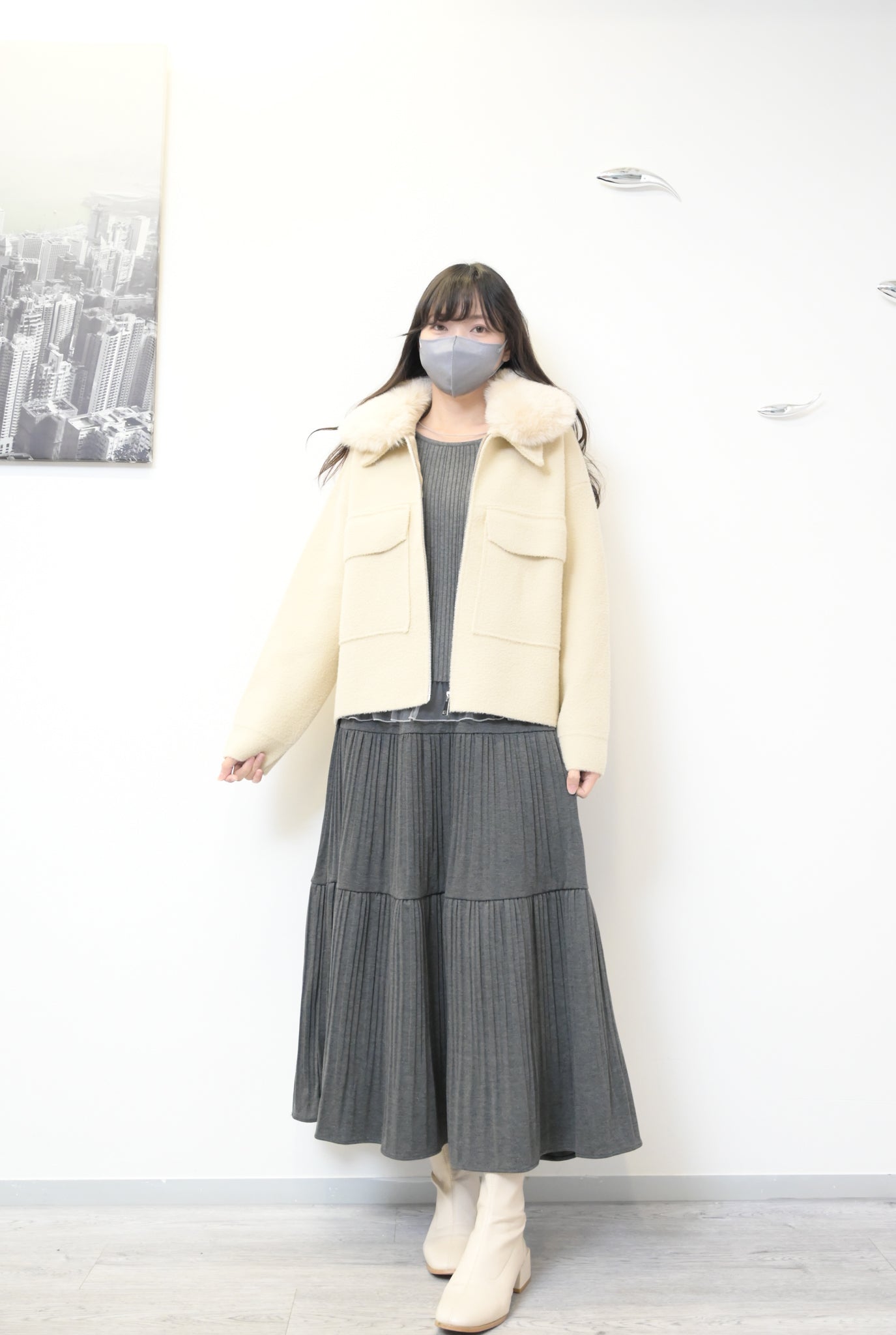 秋冬・超密針織親膚滑滑毛領外套 2色入 1W61207