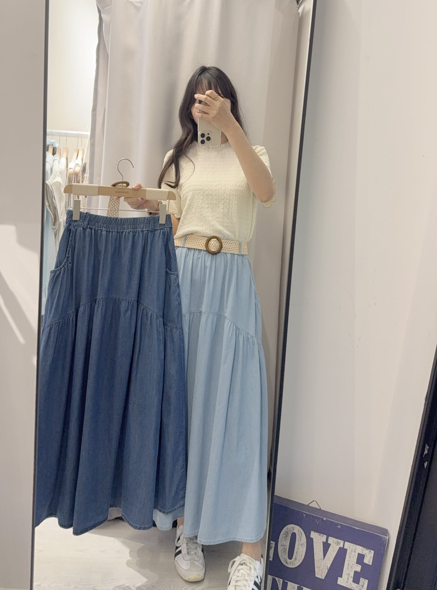 夏季・薄牛仔連Belt半身裙 2色入 1S60413