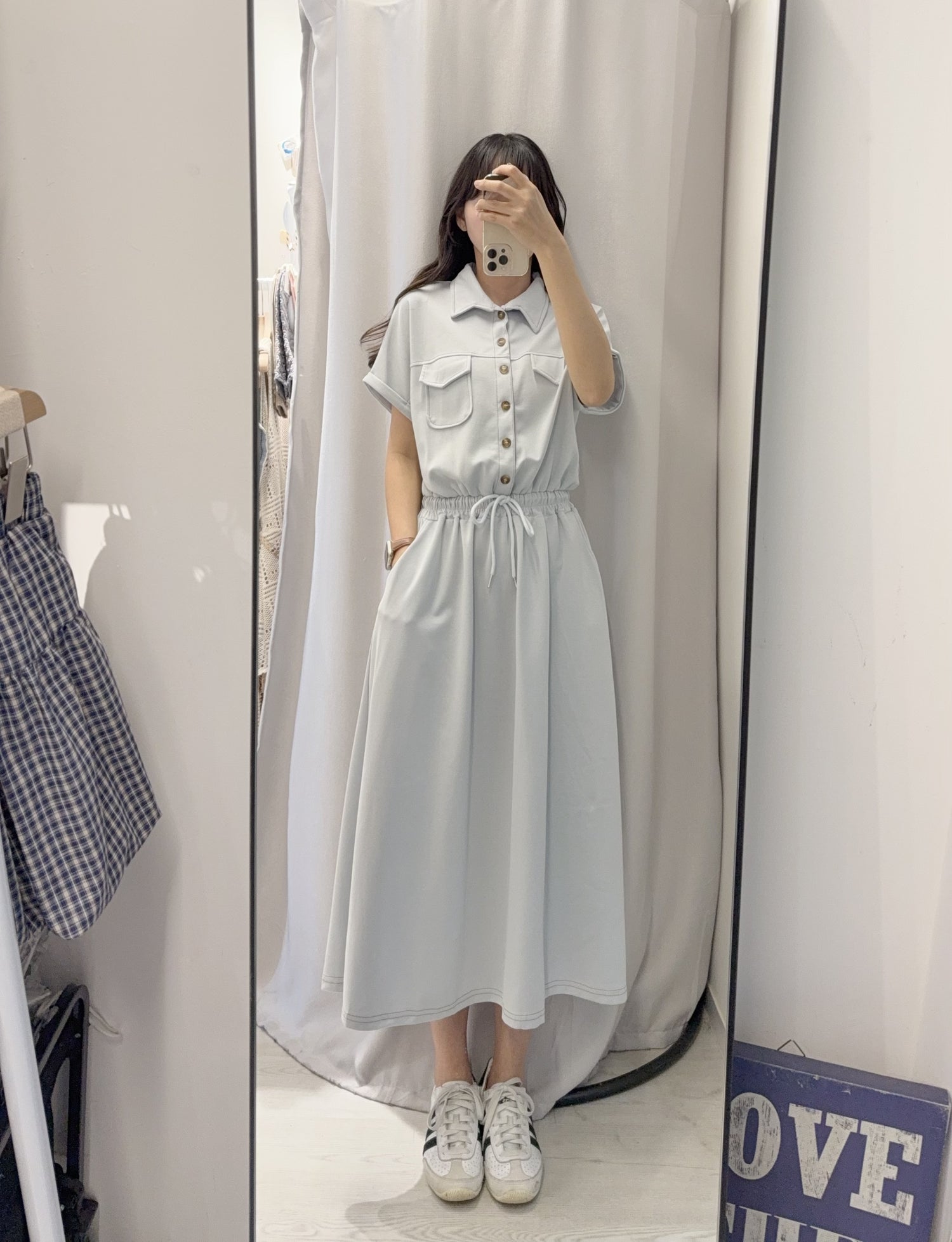夏季・明線反領太空棉收腰連身裙 2色入 1S60422