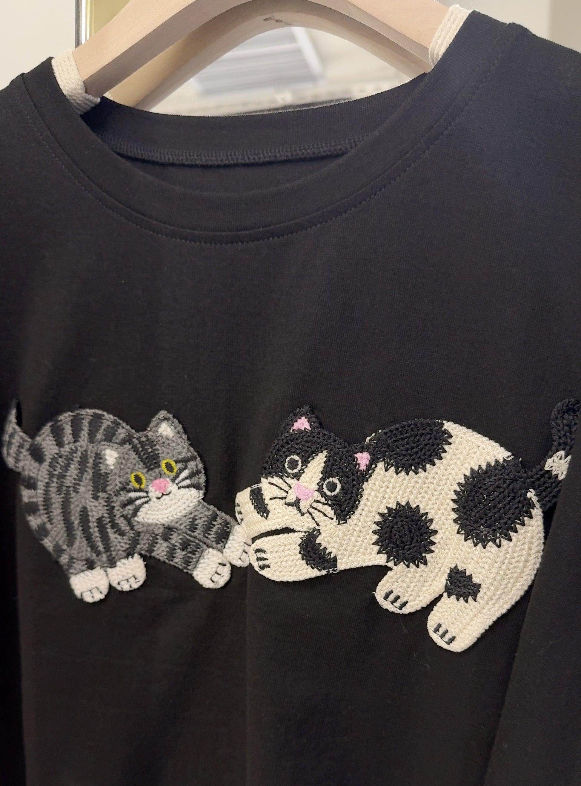 夏季・刺繡貓貓Tee 2色入 1S20318