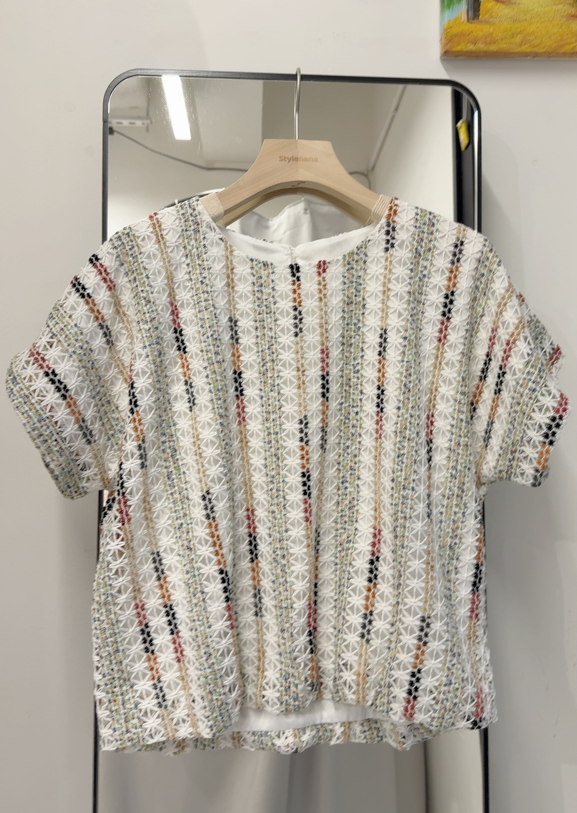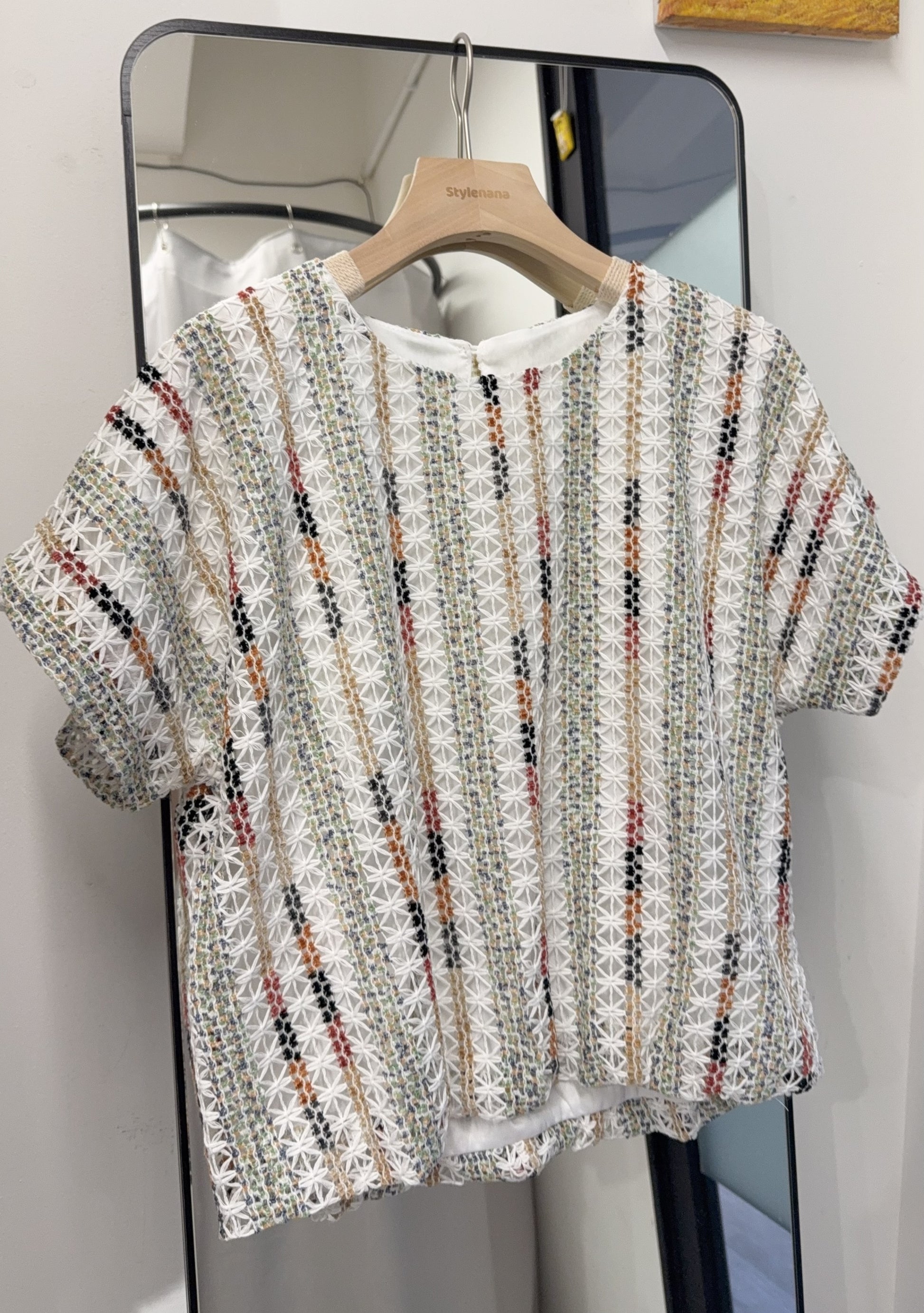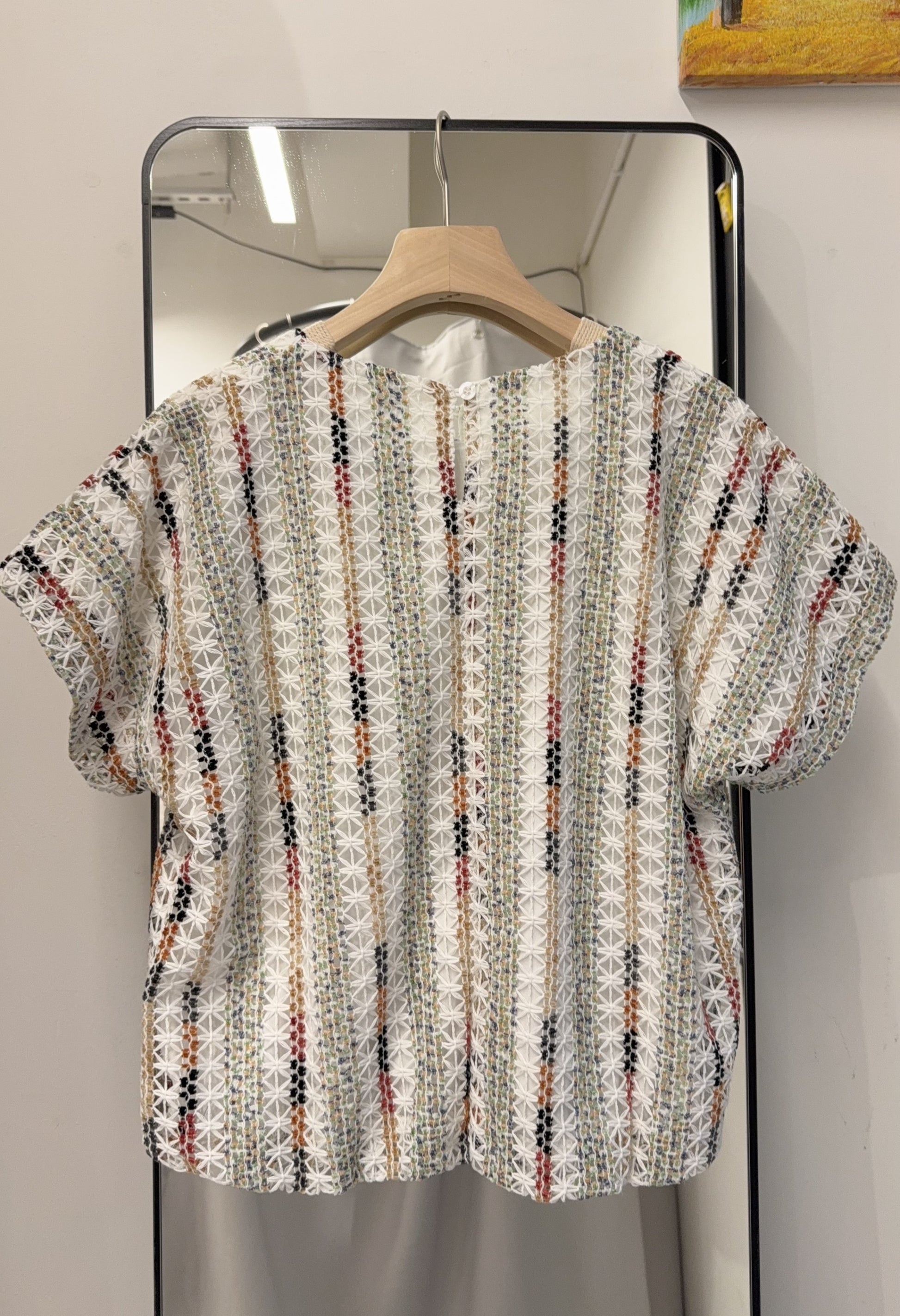 夏季・彩織勾線泡泡邊上衣 1色入 1S20319