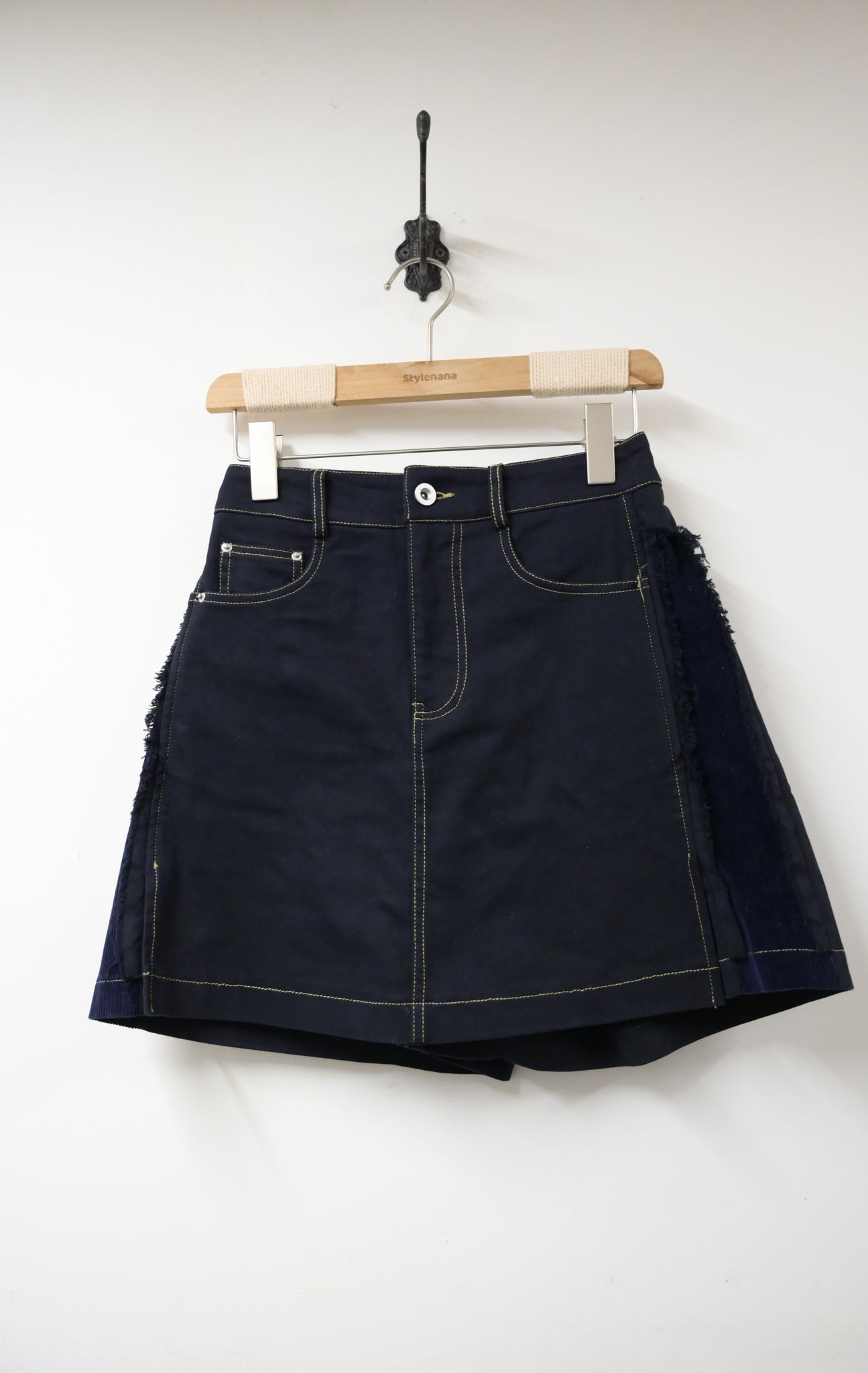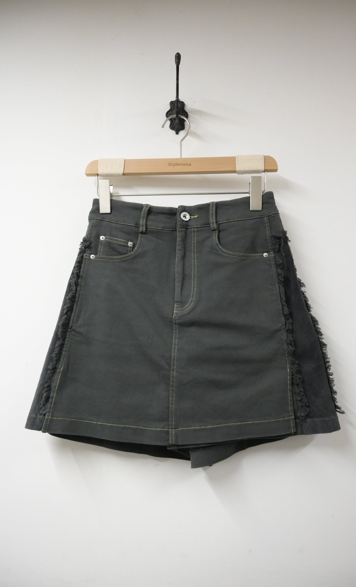 秋冬・側拼布明線扯布假裙褲 2色入 1W00115