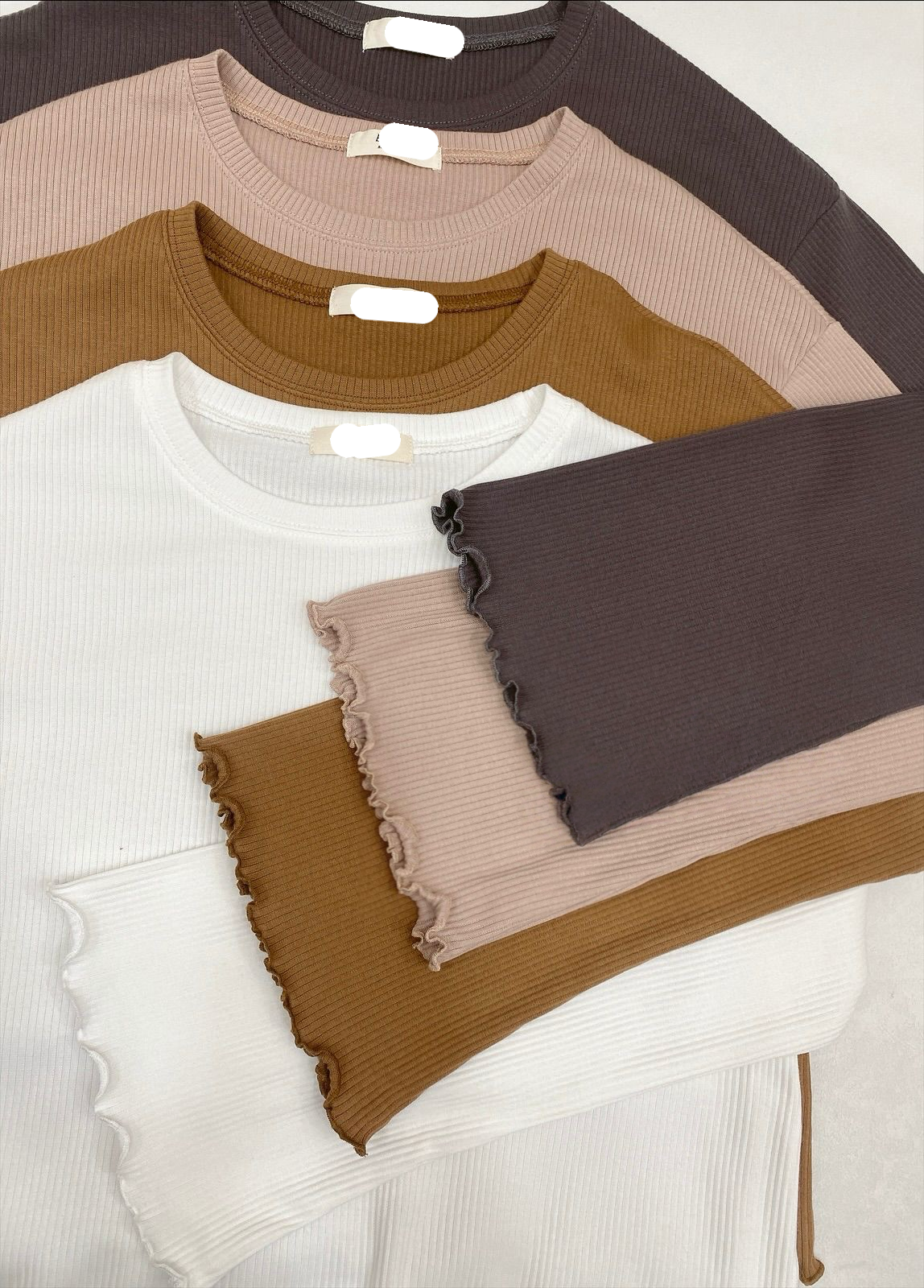 初秋・喇叭手袖坑紋彈性上衣 3色入 1W50923