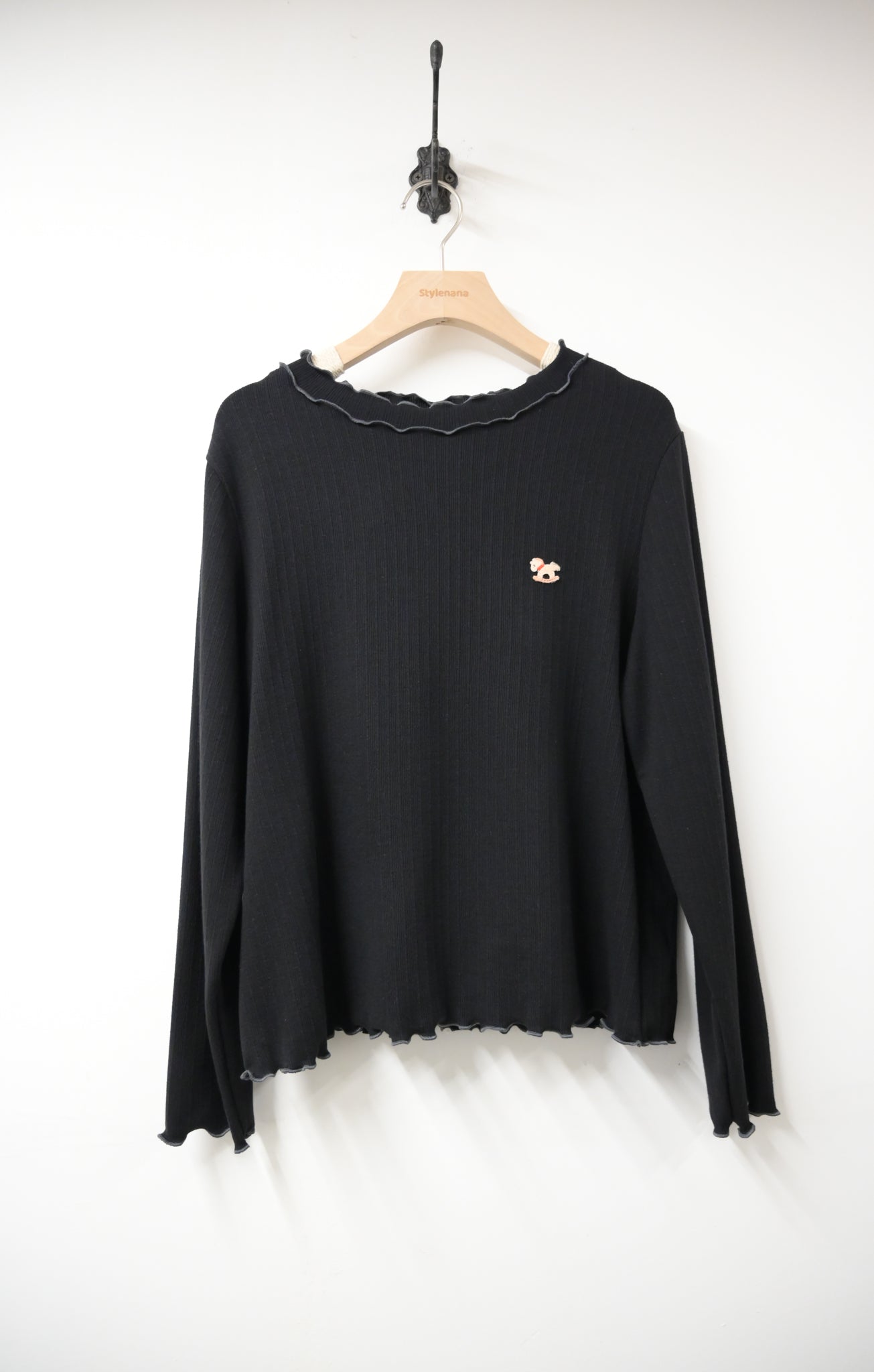 初秋・超親膚彈性刺繡木馬上衣 3色入 1W50925