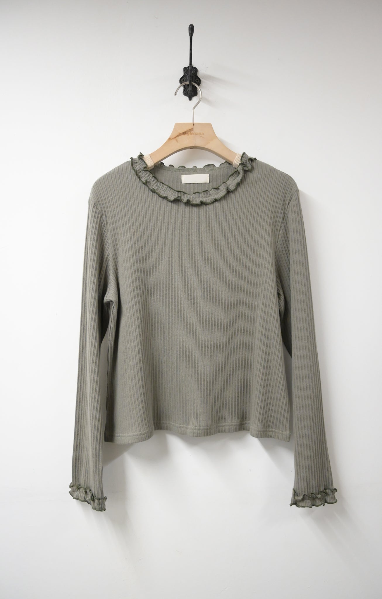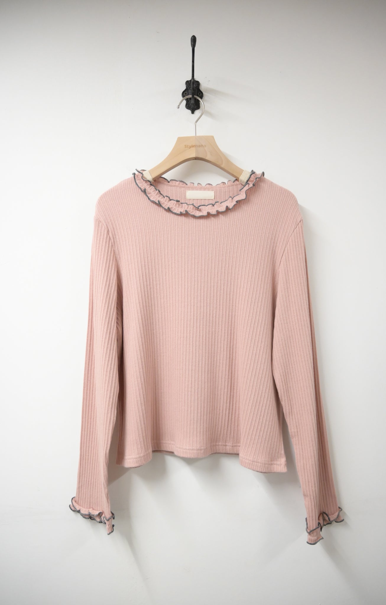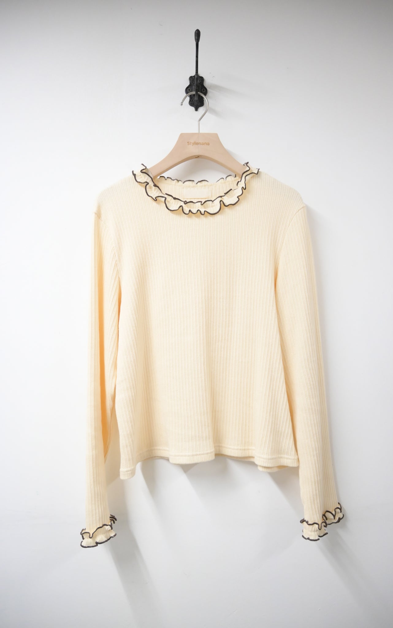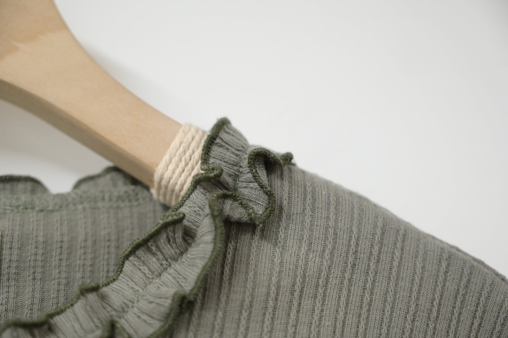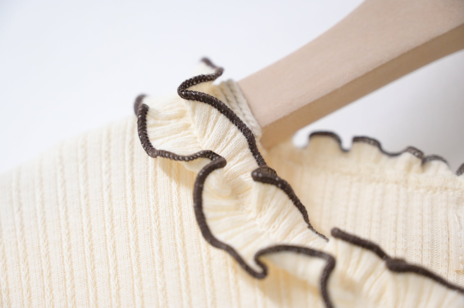 初秋・撞色Ruffles邊彈性上衣 3色入 1W51008