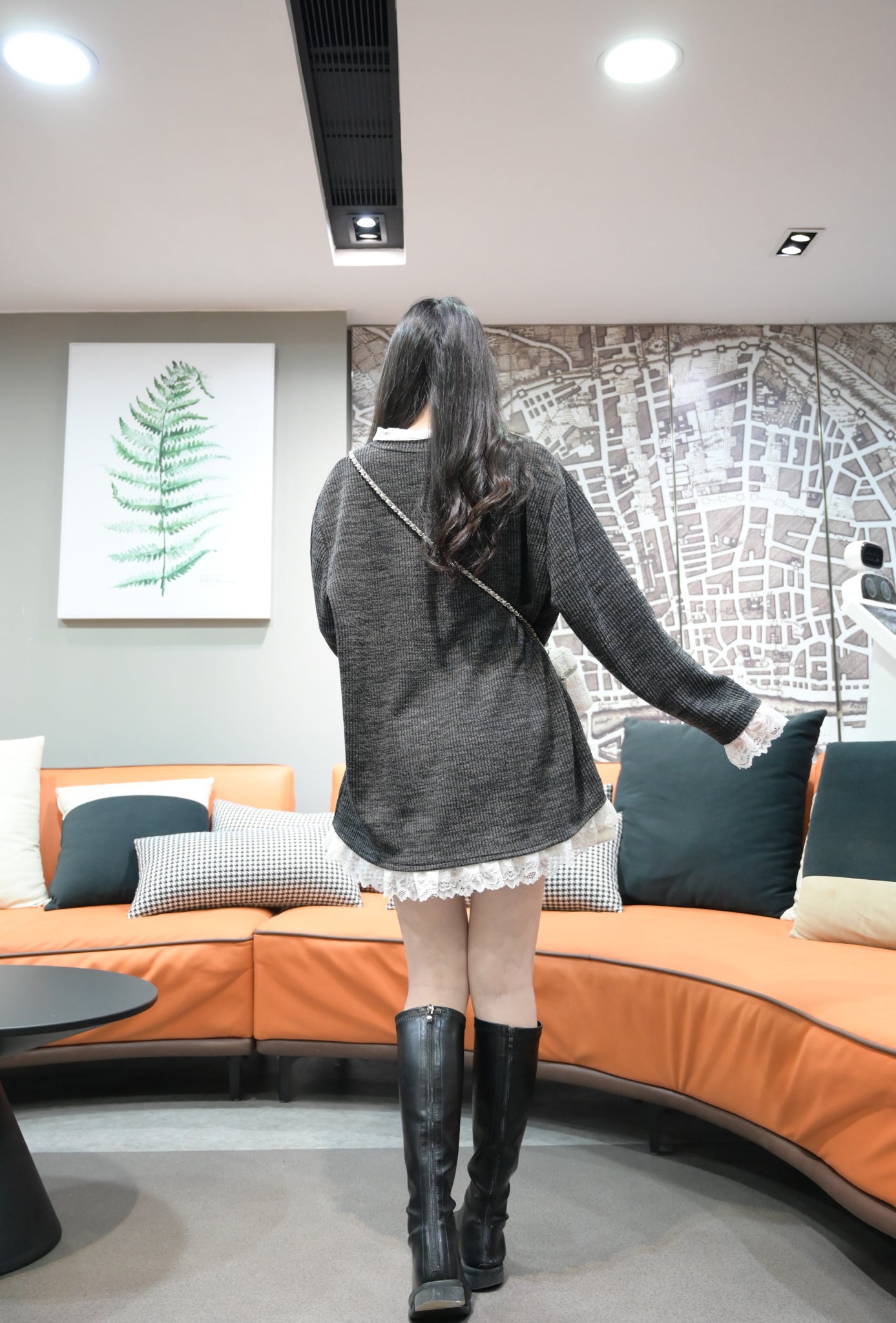 秋冬・LACE領彈性布料親膚連身裙 2色入 1W60113
