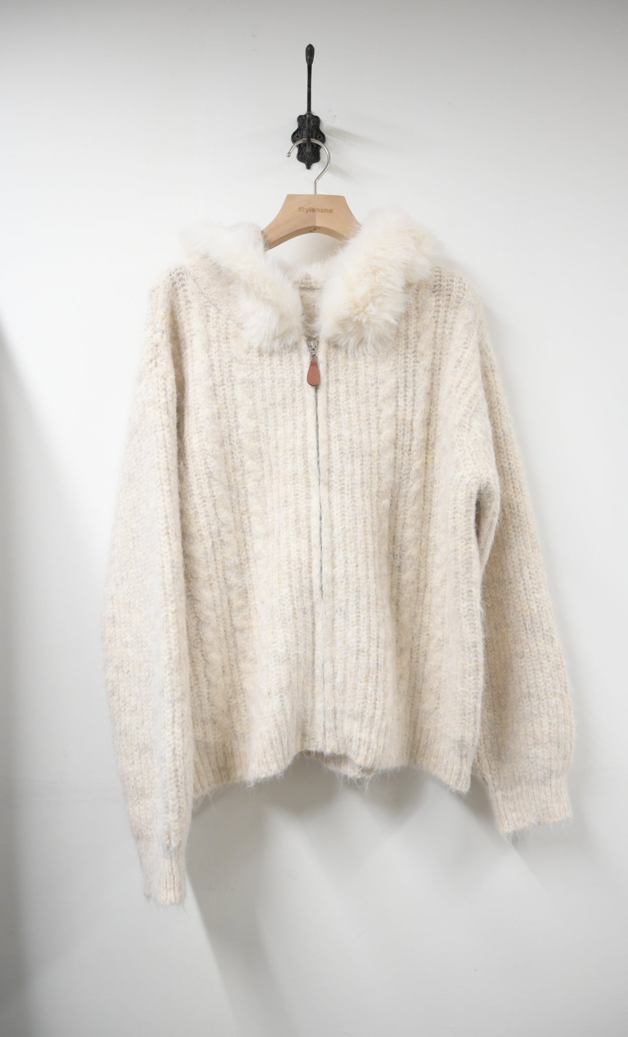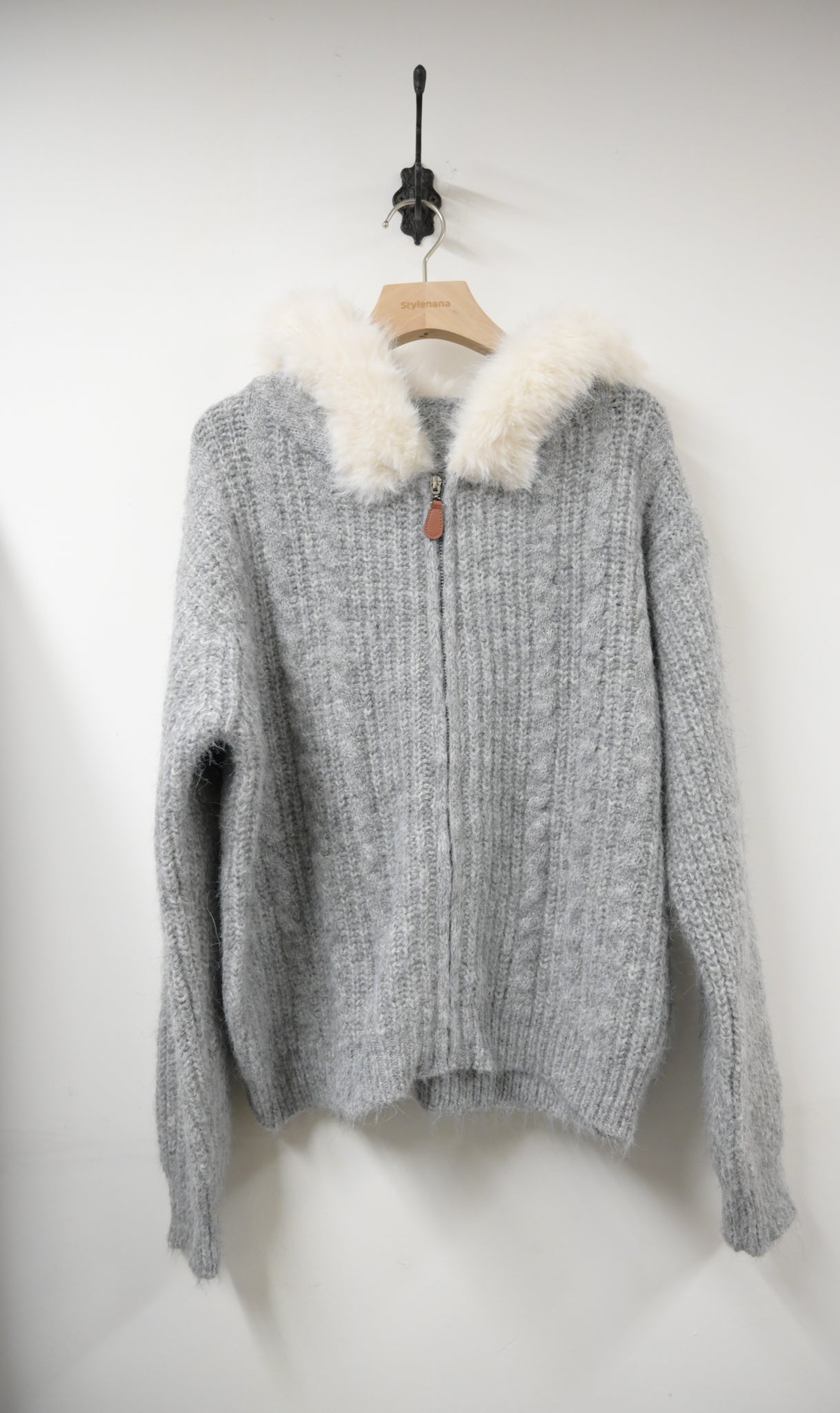 秋冬・毛毛領皮革拉鏈混色冷外套 2色入 1W60120