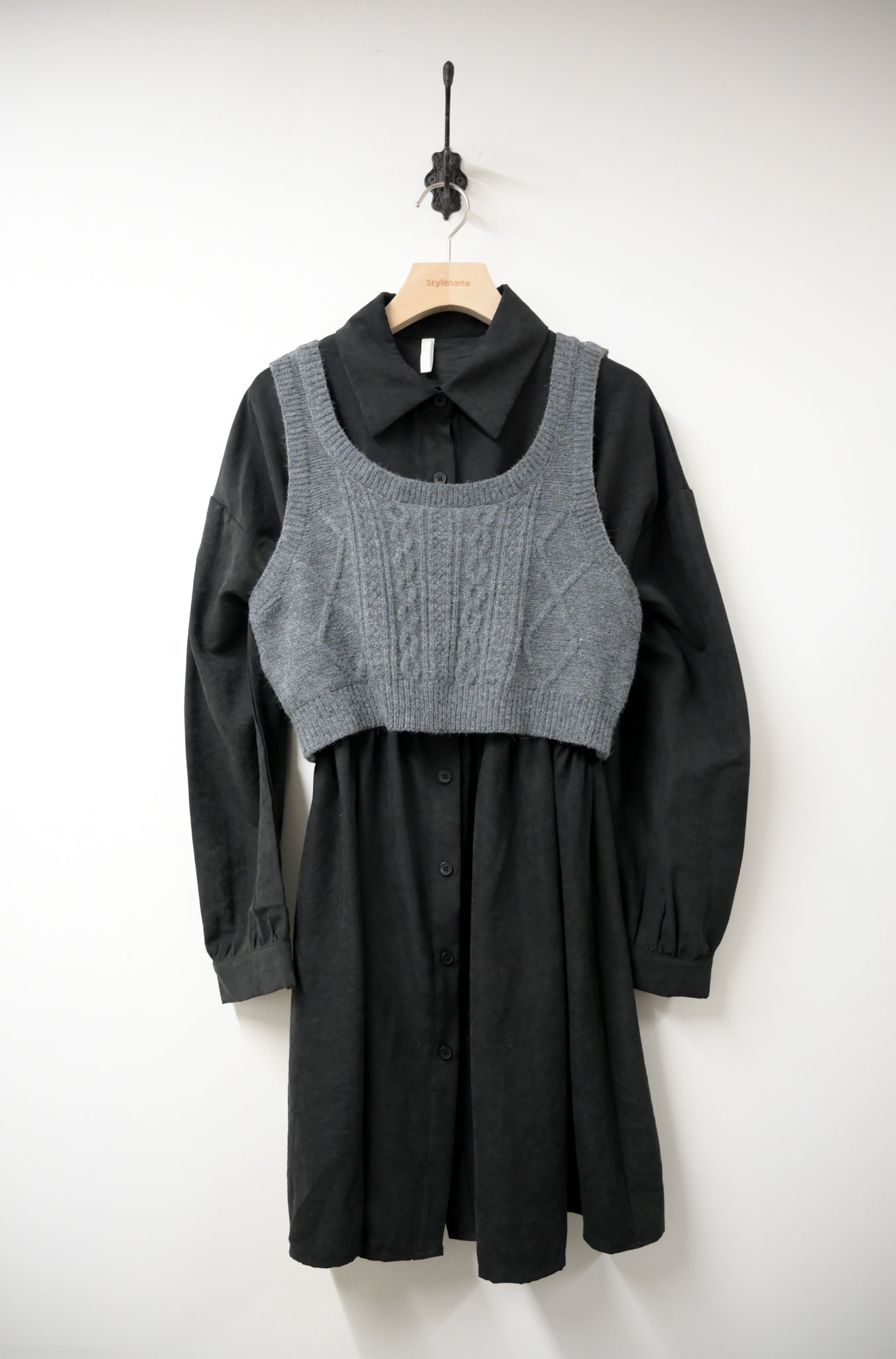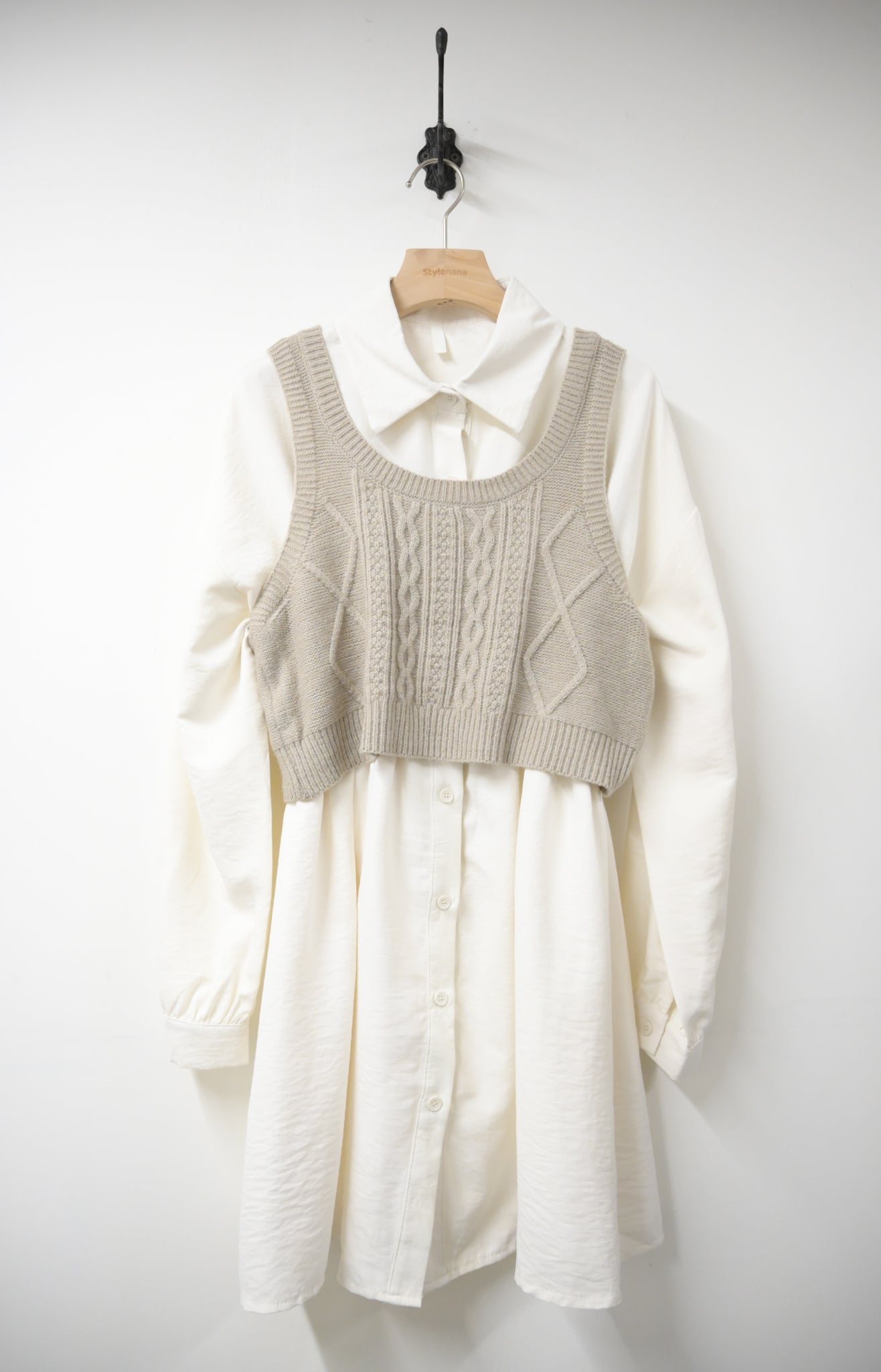 初秋.薄絨配線冷背心套裝 3色入1W60930