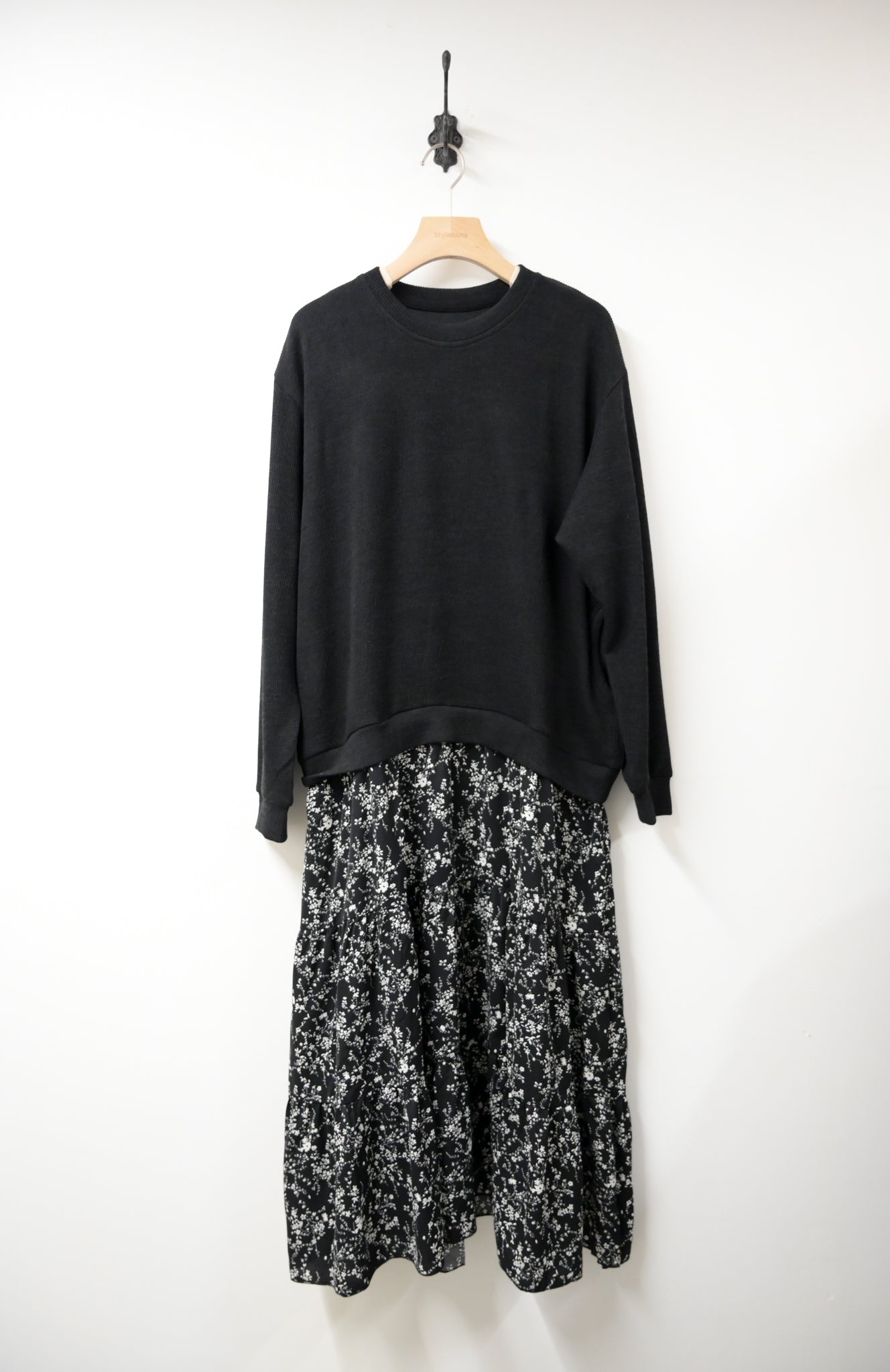 初秋.超寬鬆針織拼接碎花長裙 2色入 1W60931