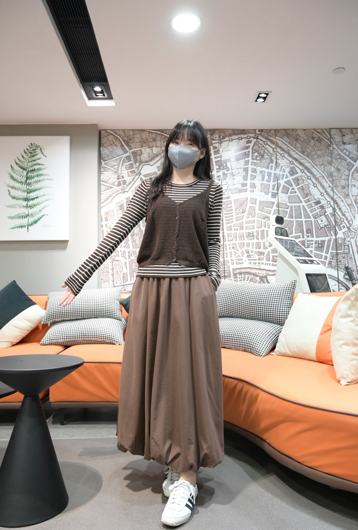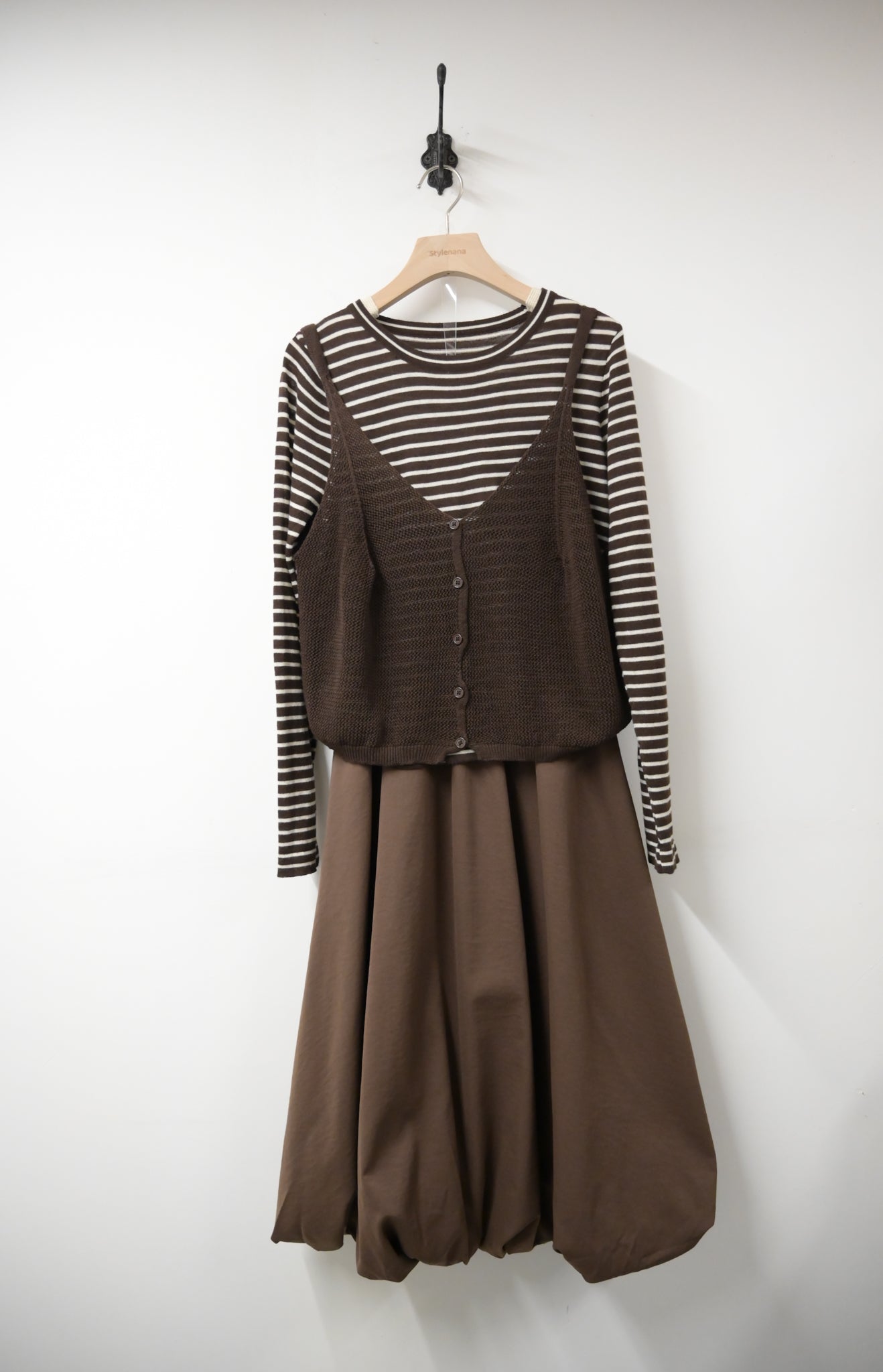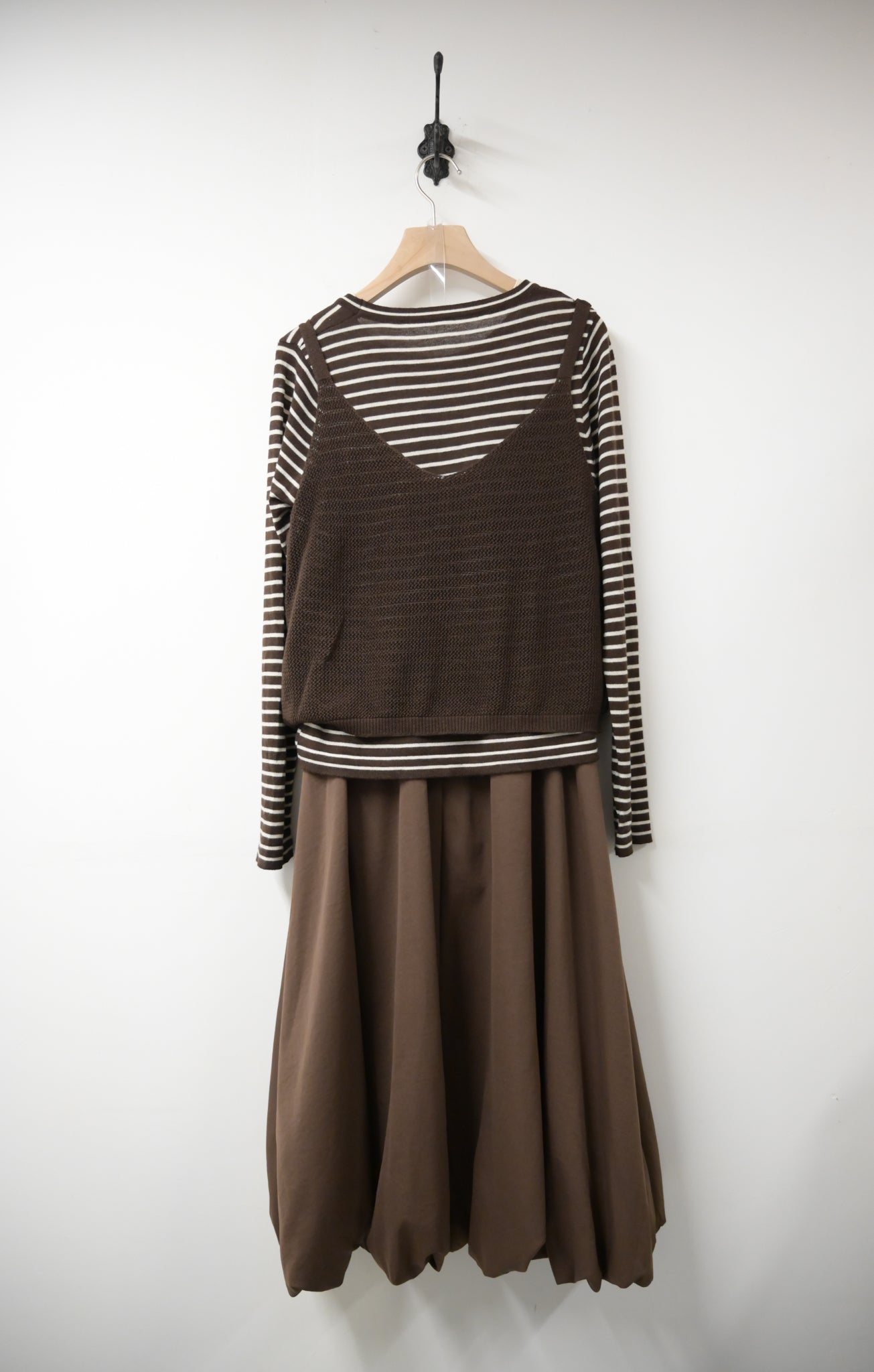 初秋・親膚橫間配泡泡裙套裝 2色入 1W61013