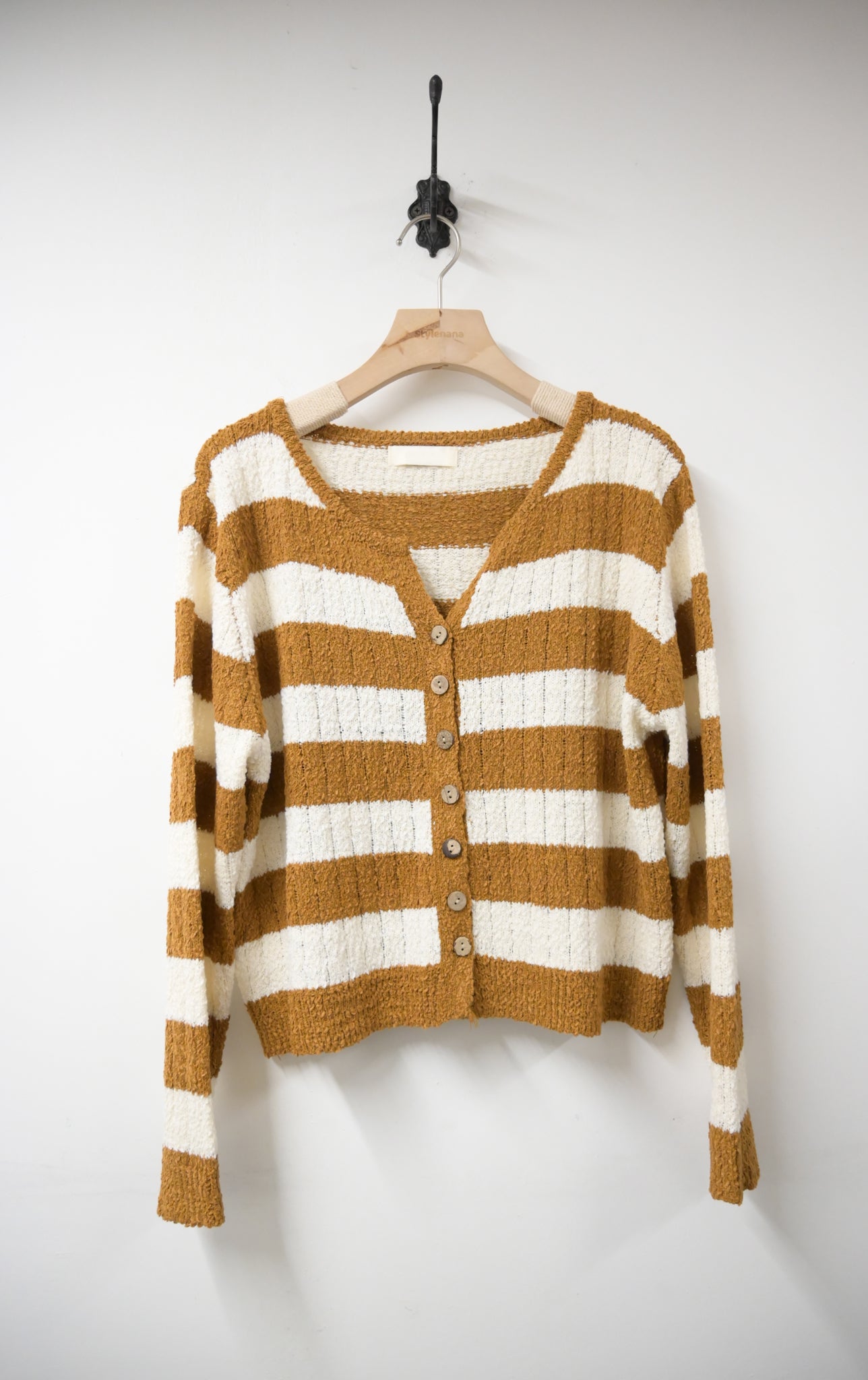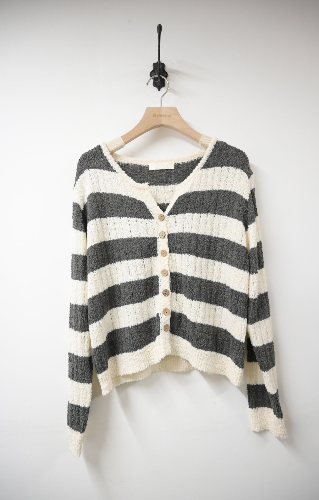 初秋・親膚橫間木鈕仔線衫外套 2色入 1W61035