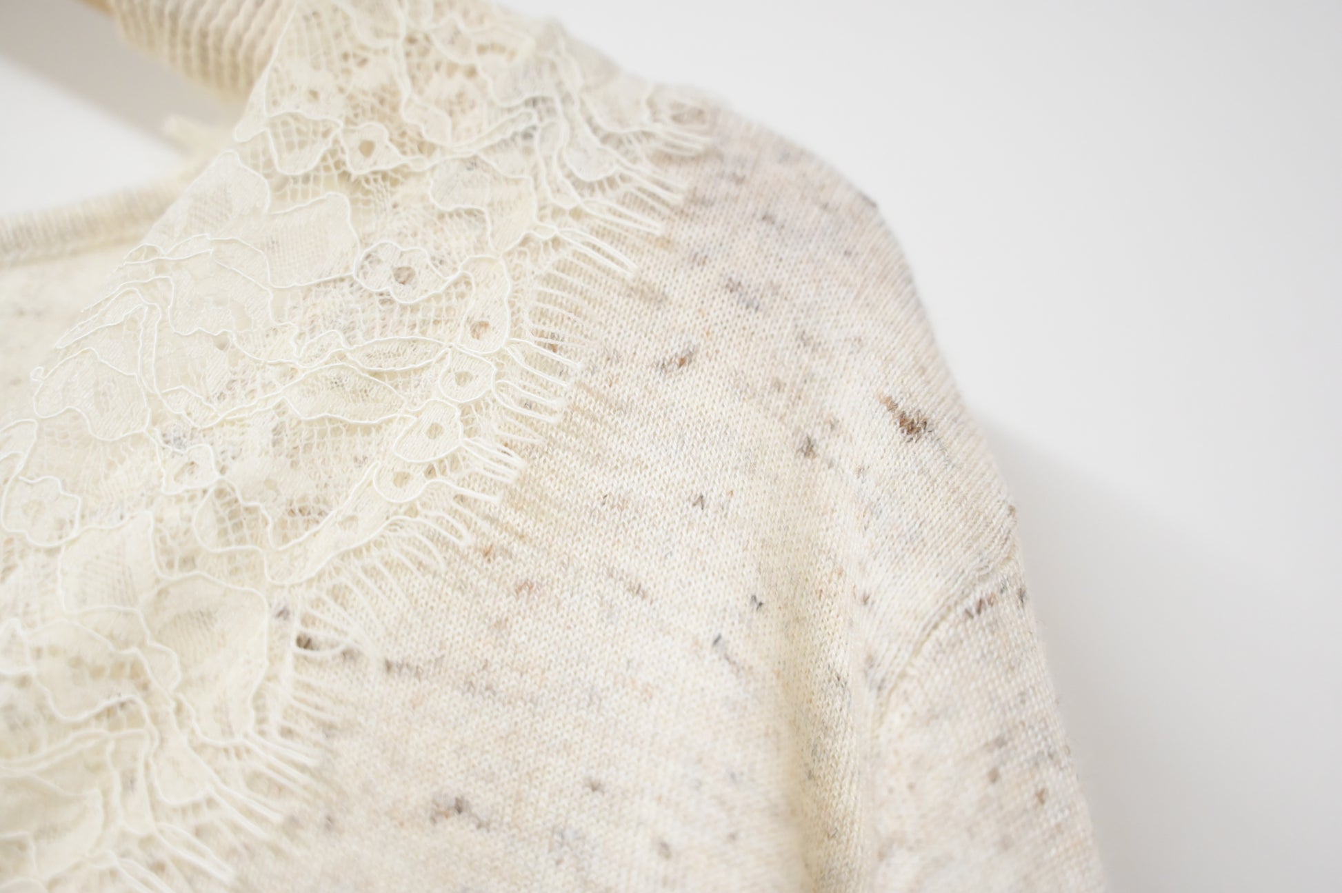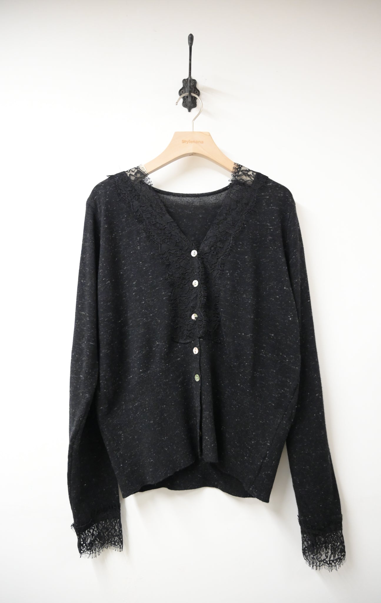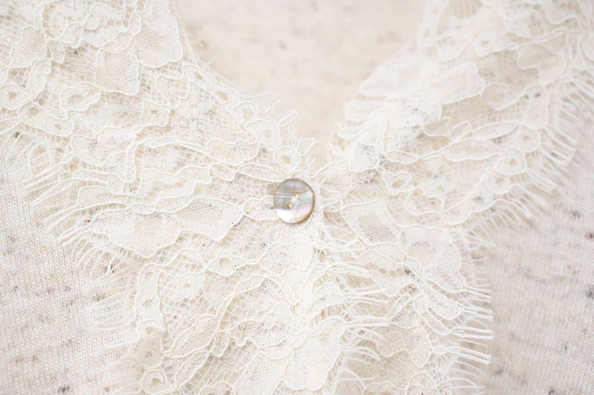 初秋・超親膚蕾絲拼柔軟混色針織外套 2色入 1W61036