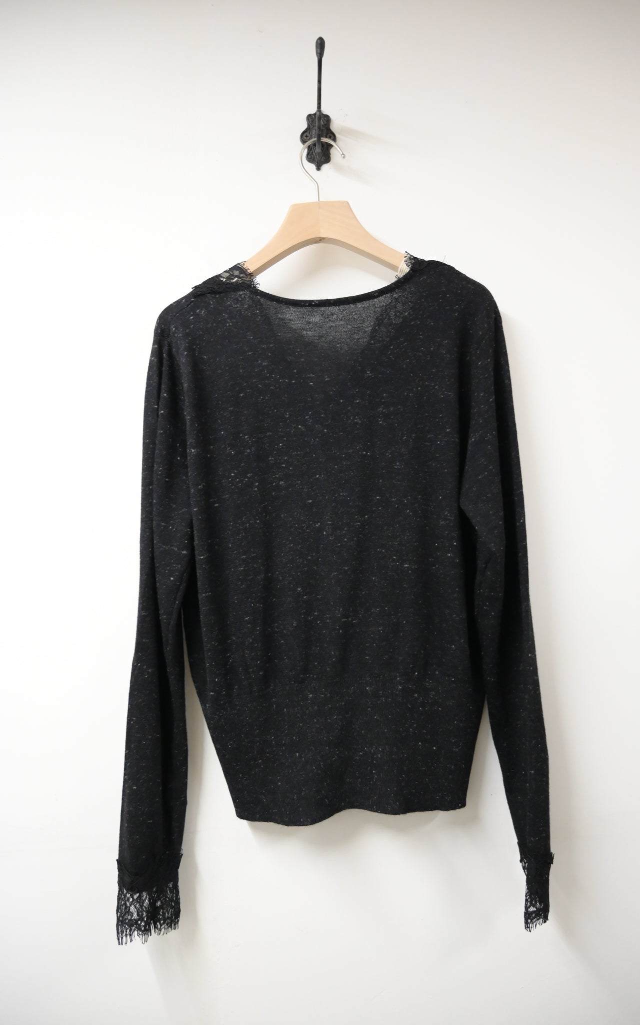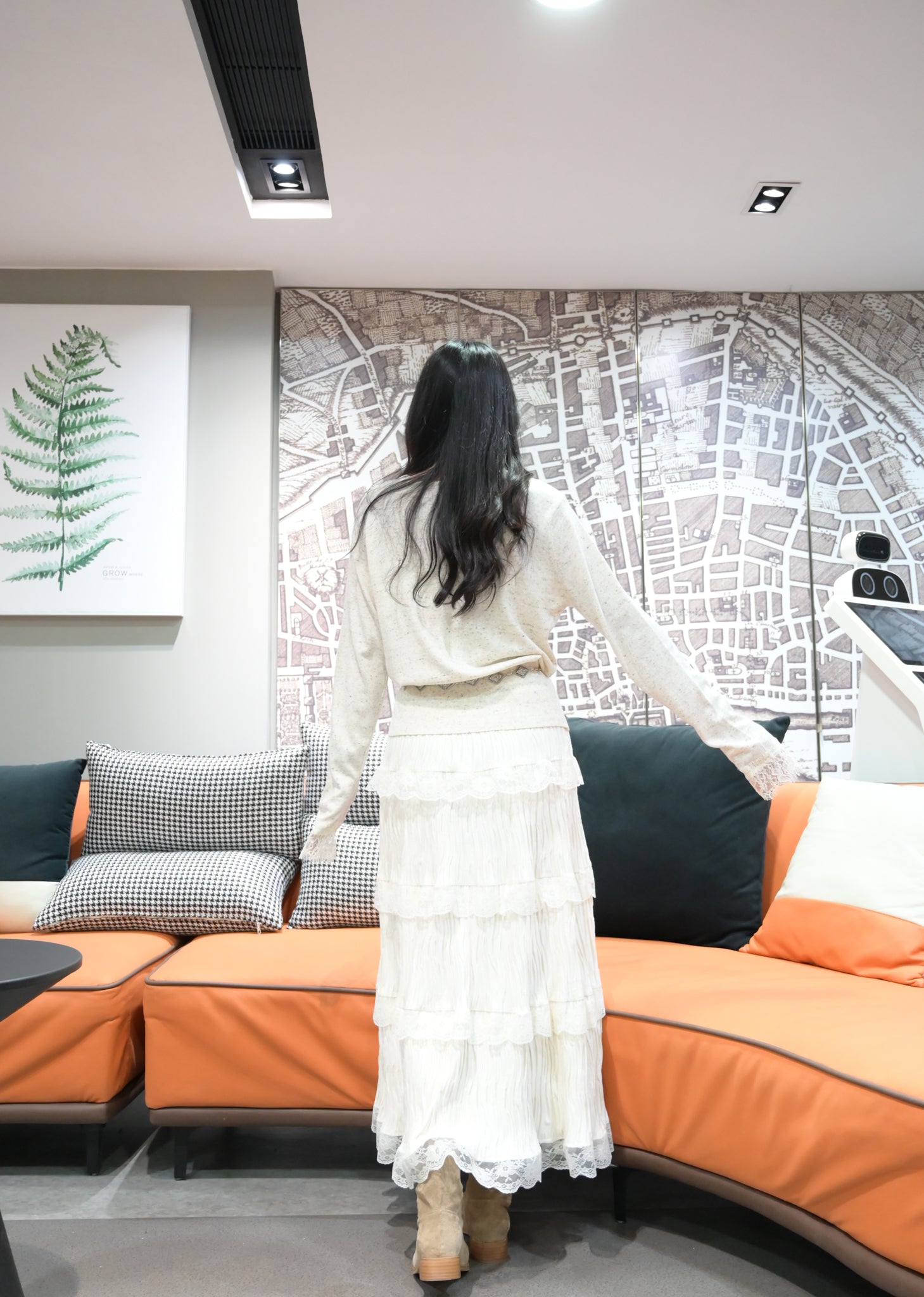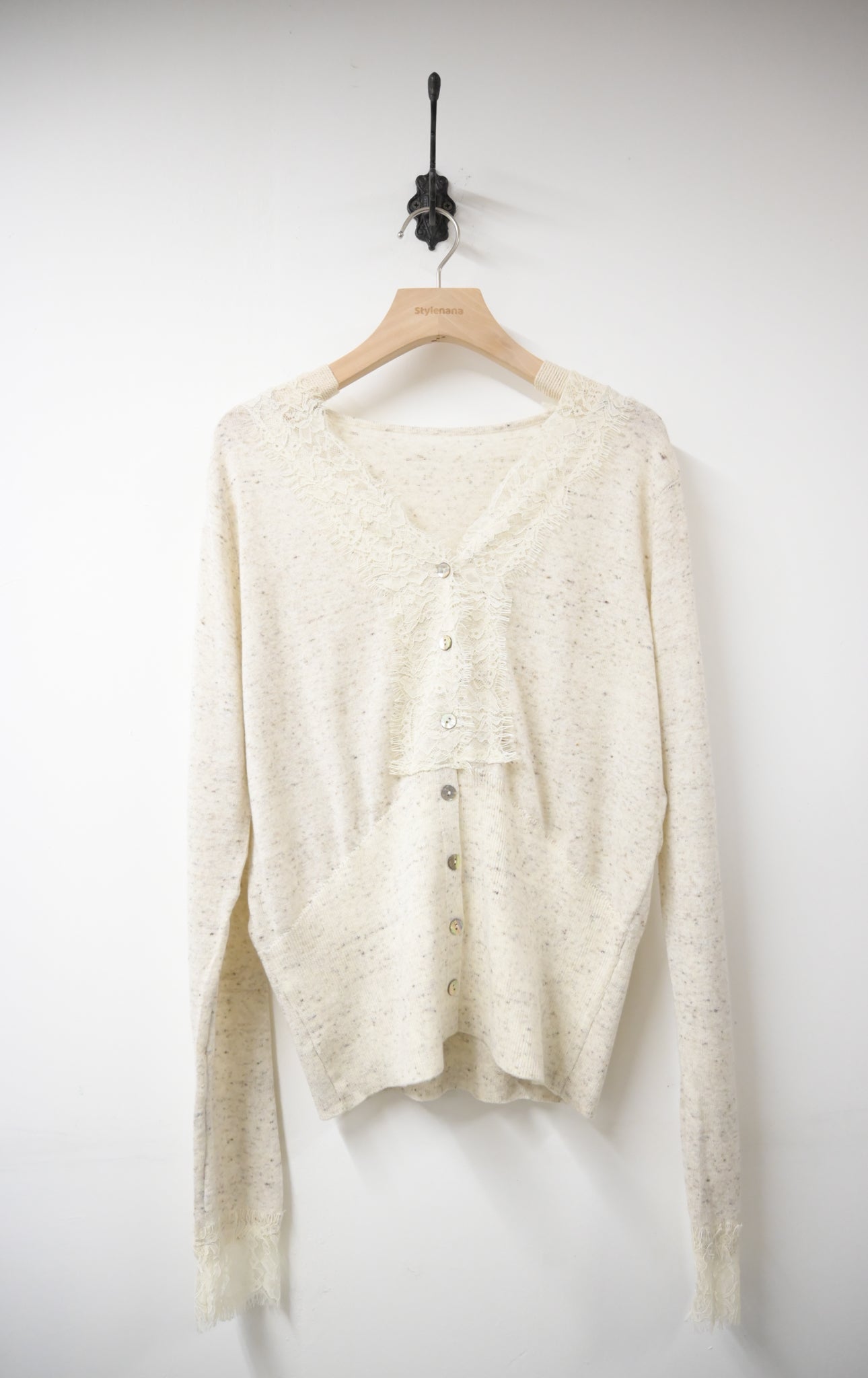 初秋・超親膚蕾絲拼柔軟混色針織外套 2色入 1W61036