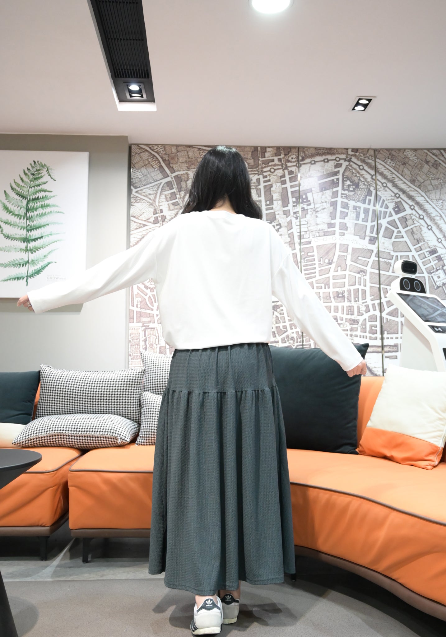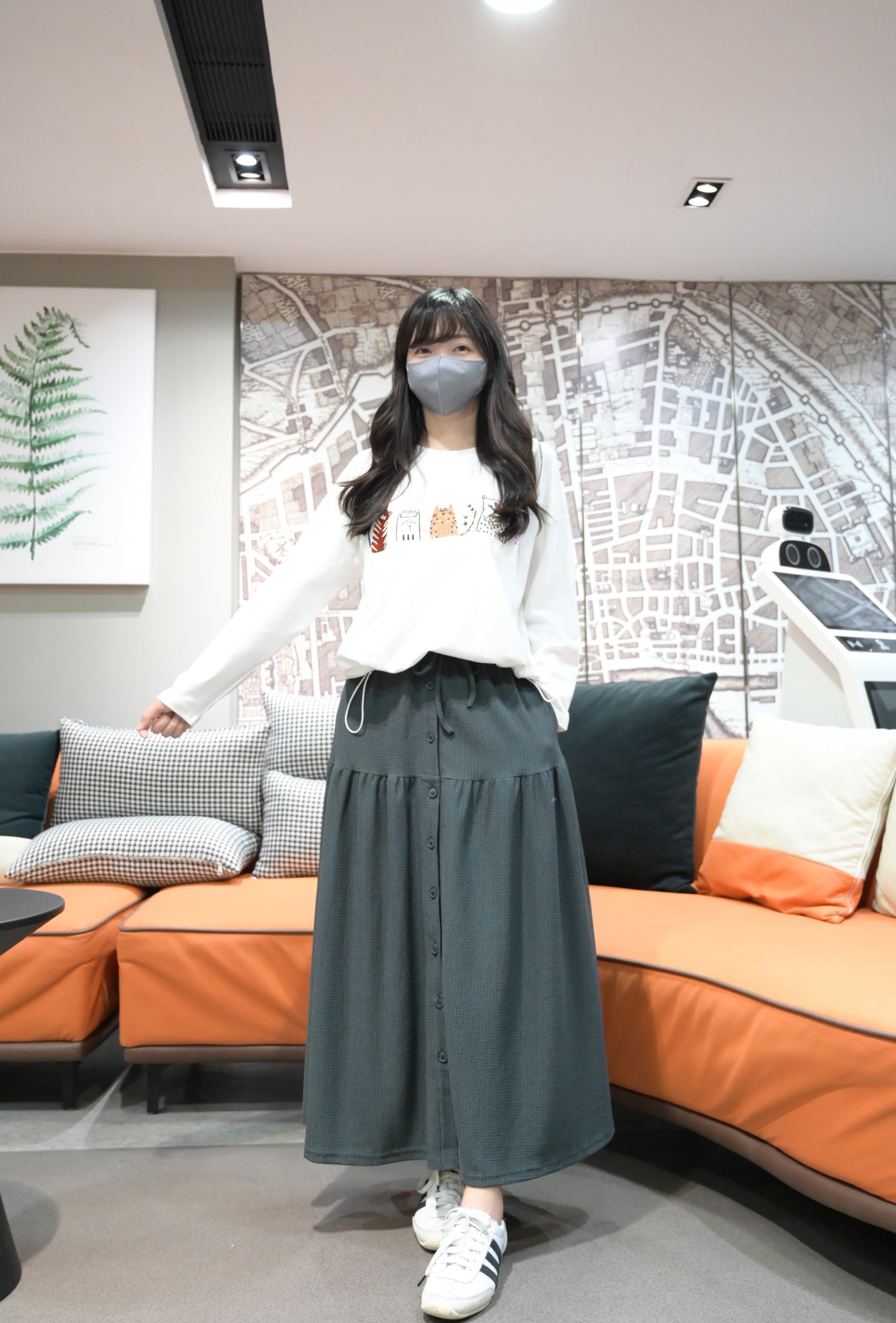初秋・彈性料排鈕半身裙 2色入 1W61106