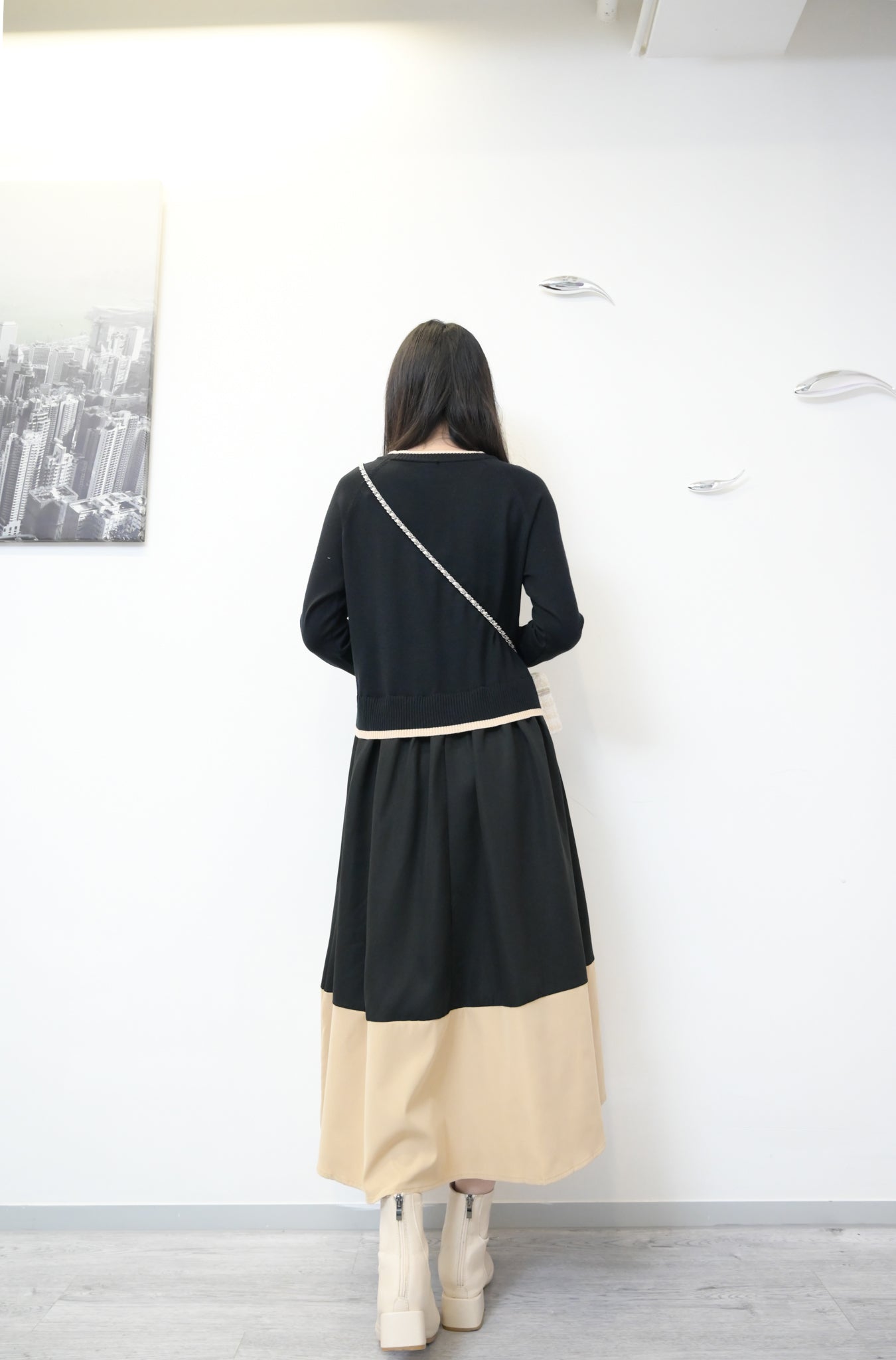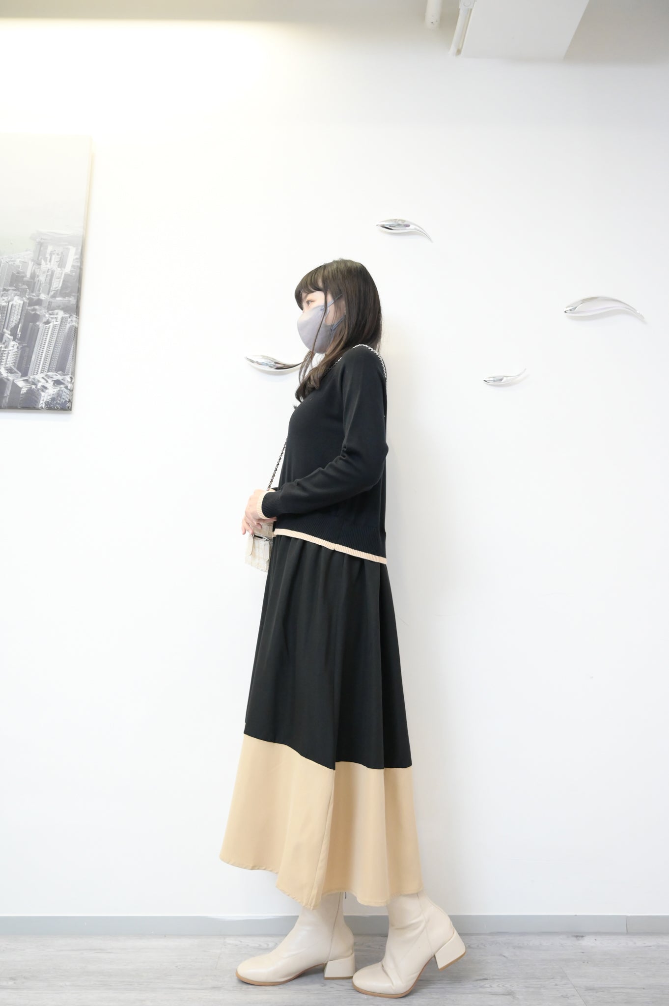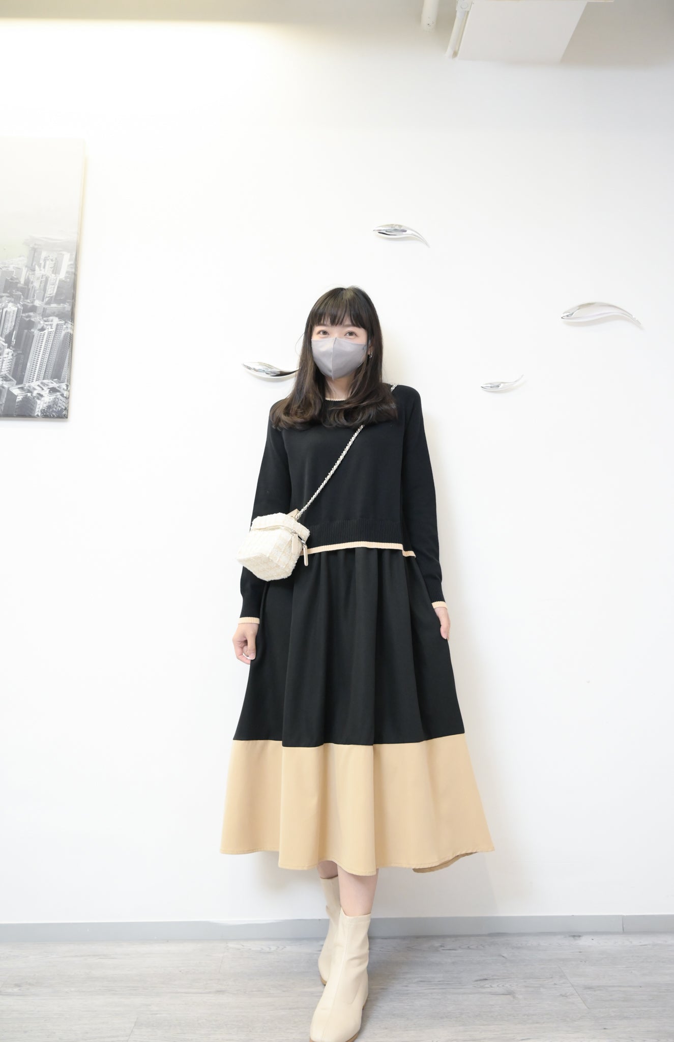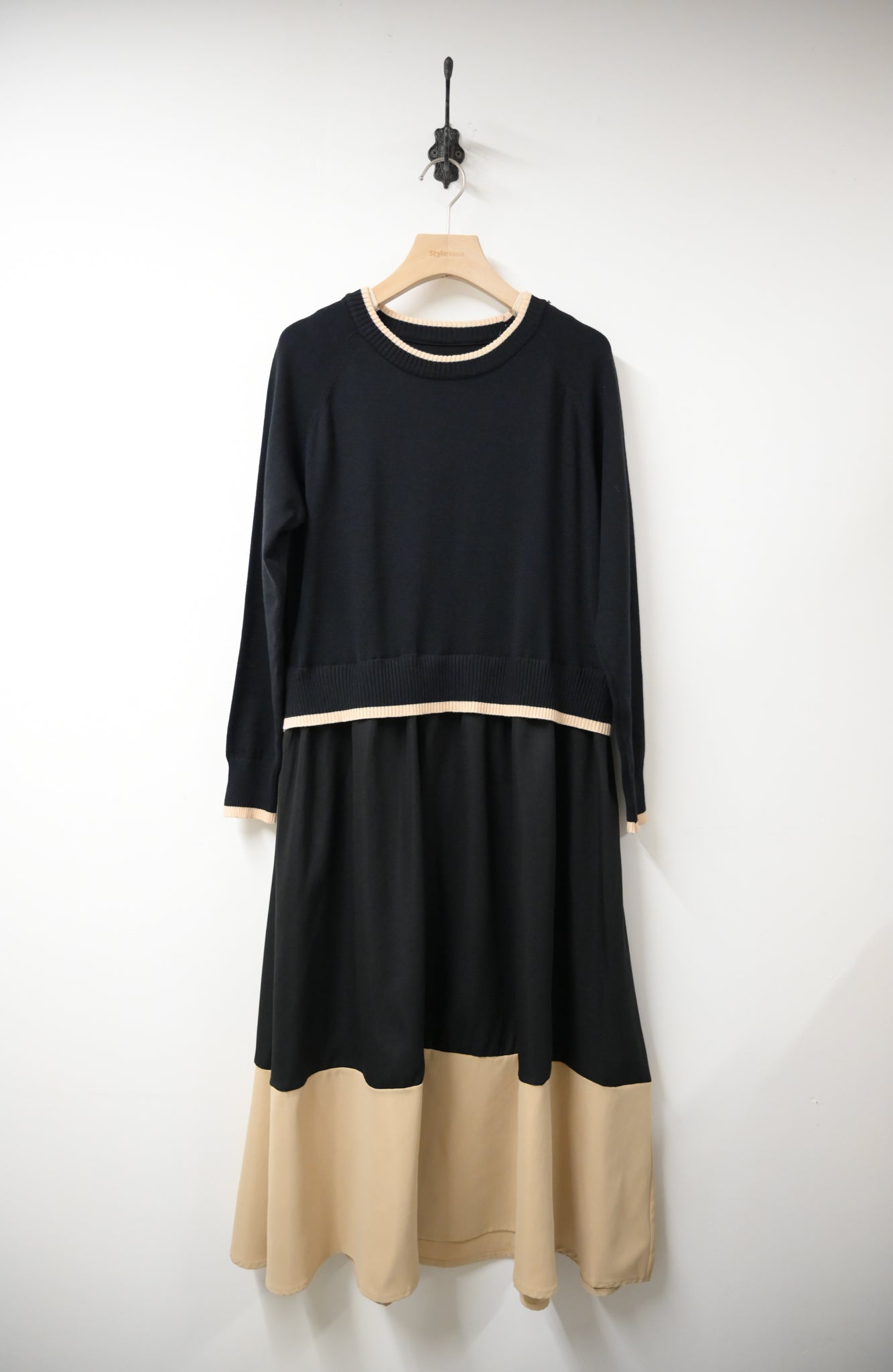 拼色柔軟針織連身裙 2色入 1W61119
