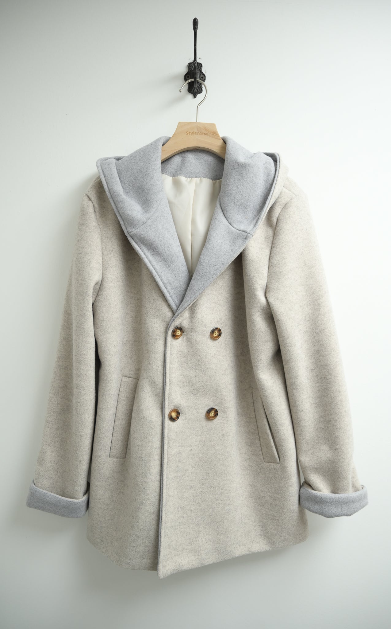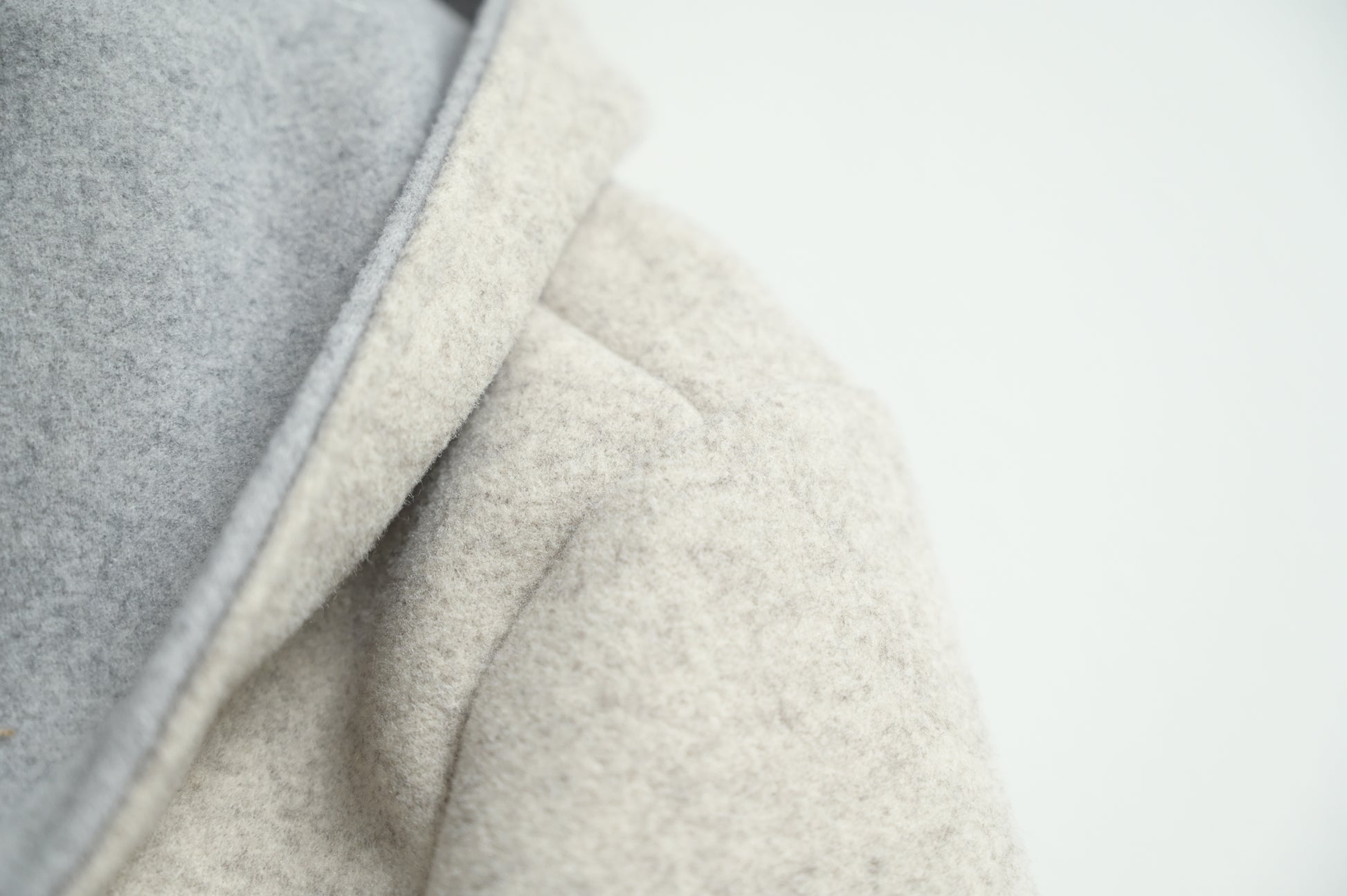 撞色反袖帶帽中長絨褸 1色入 1W61121
