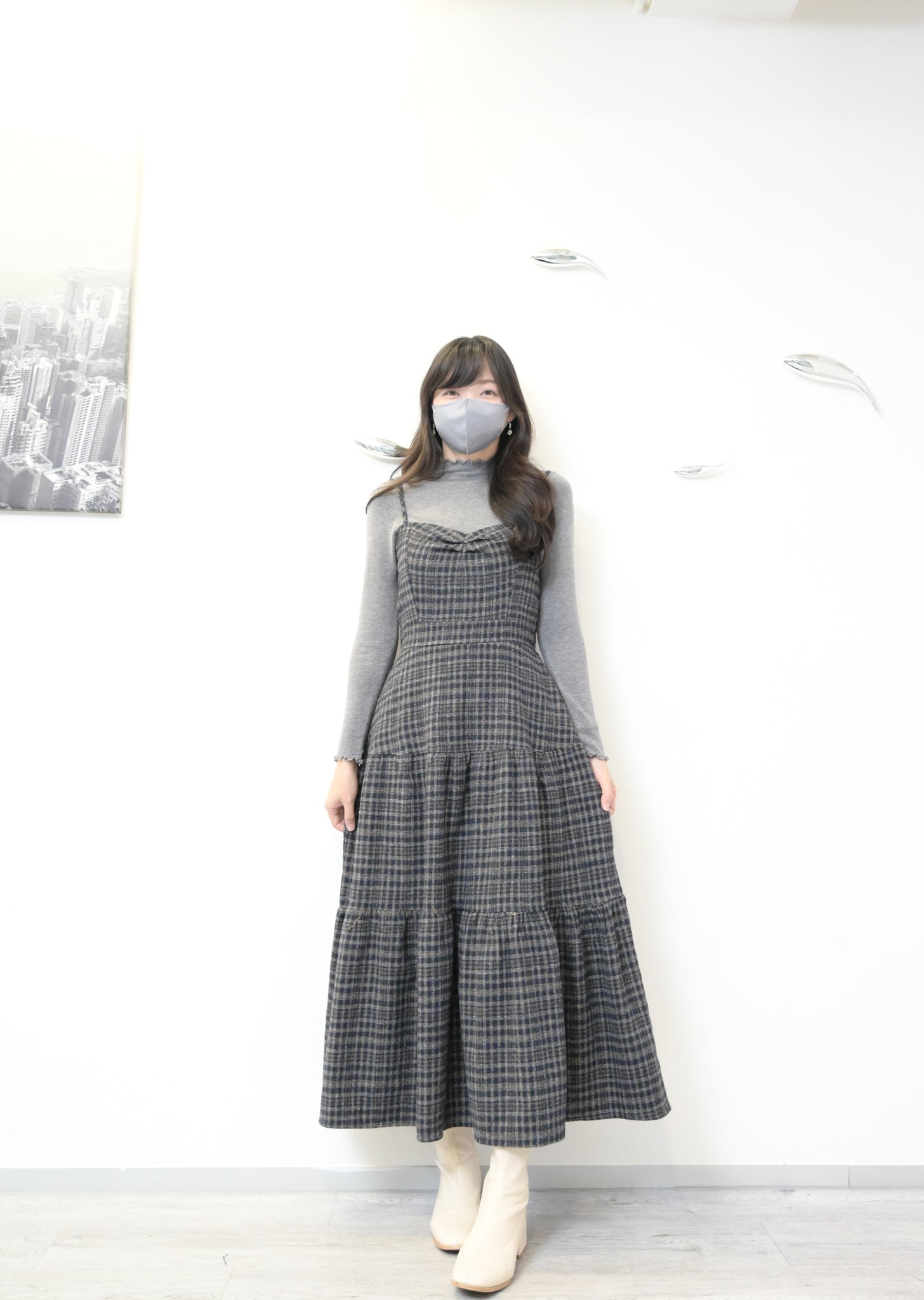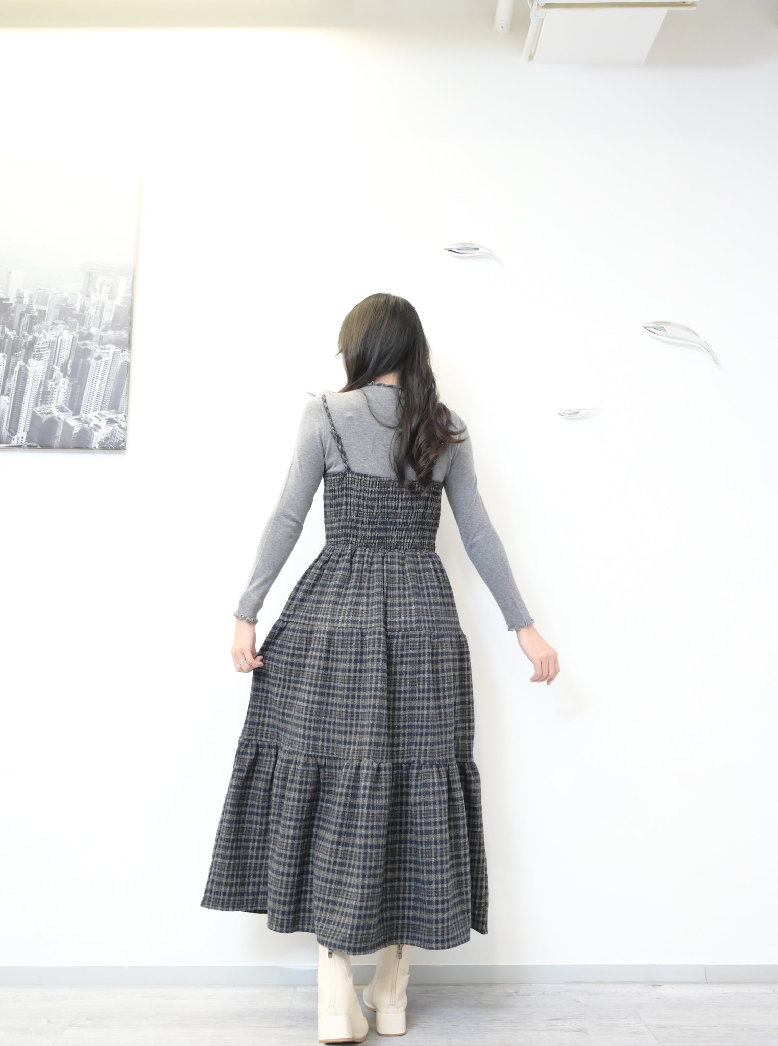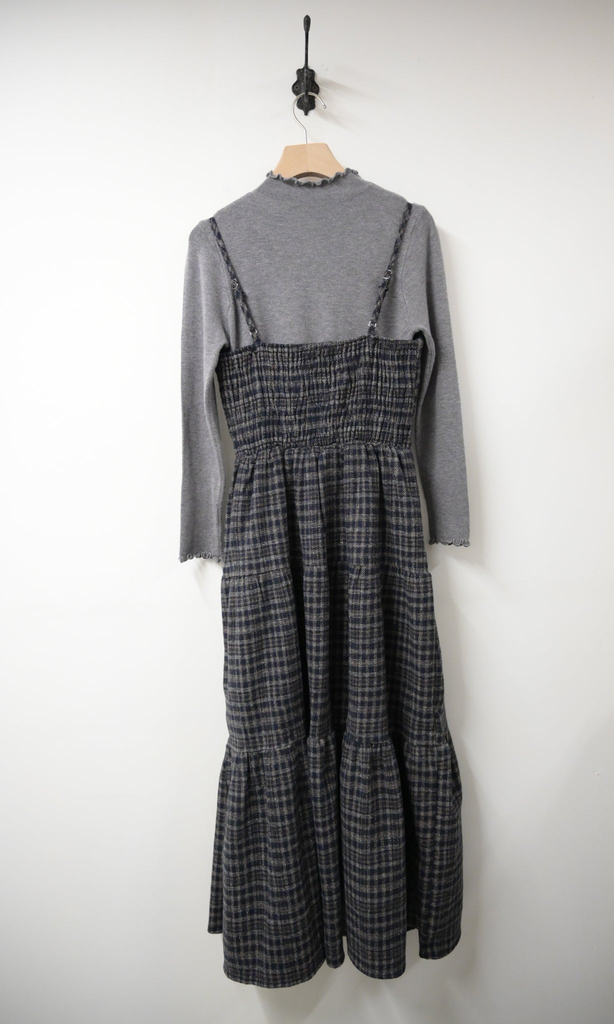 秋冬・厚格仔長裙配幼針織彈性上衣SET 2色入 1W61126