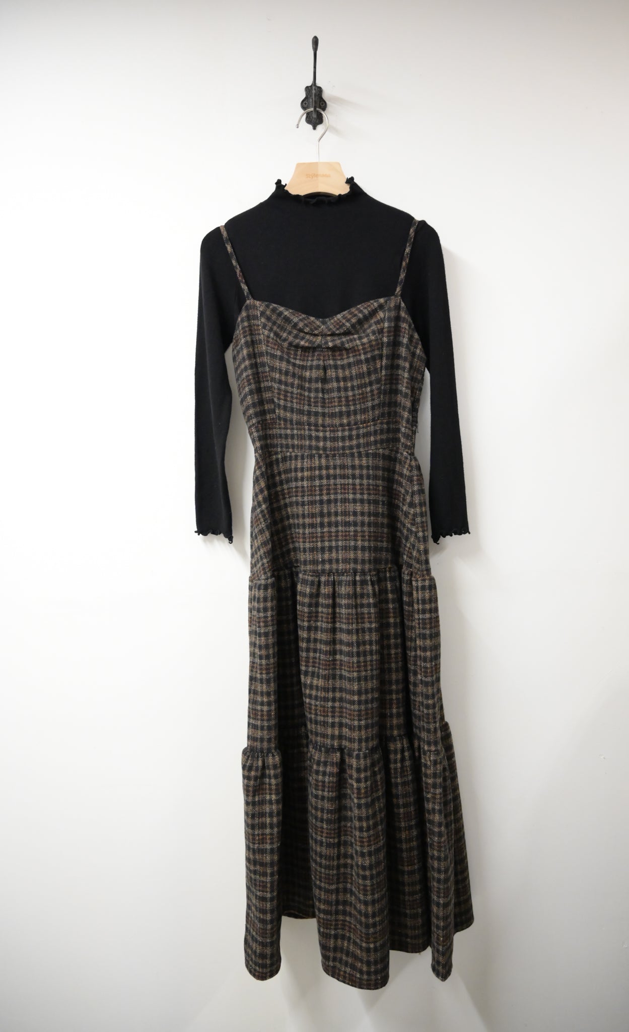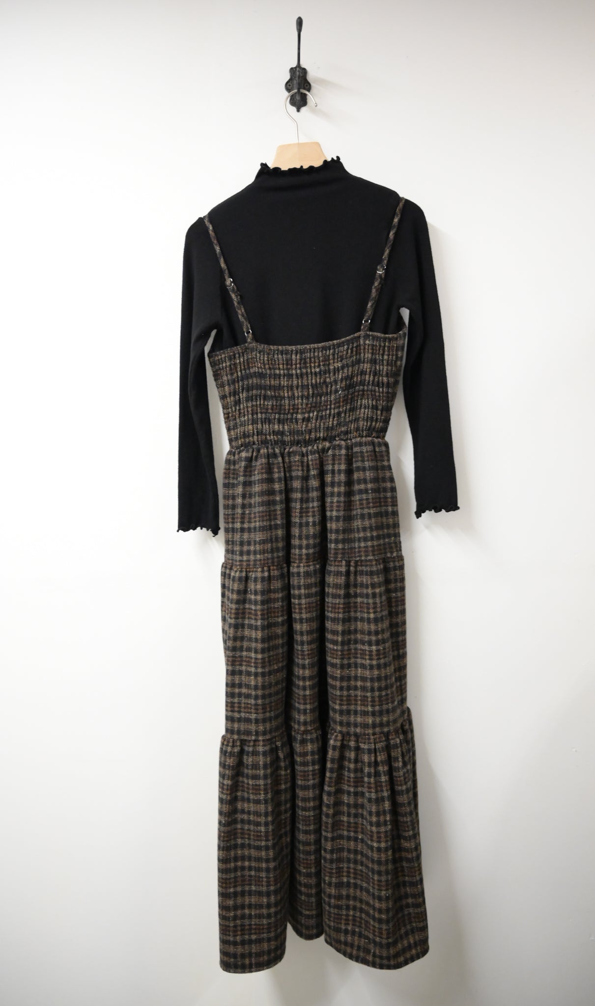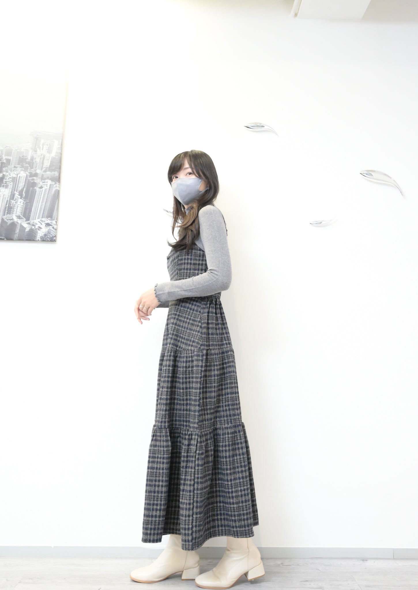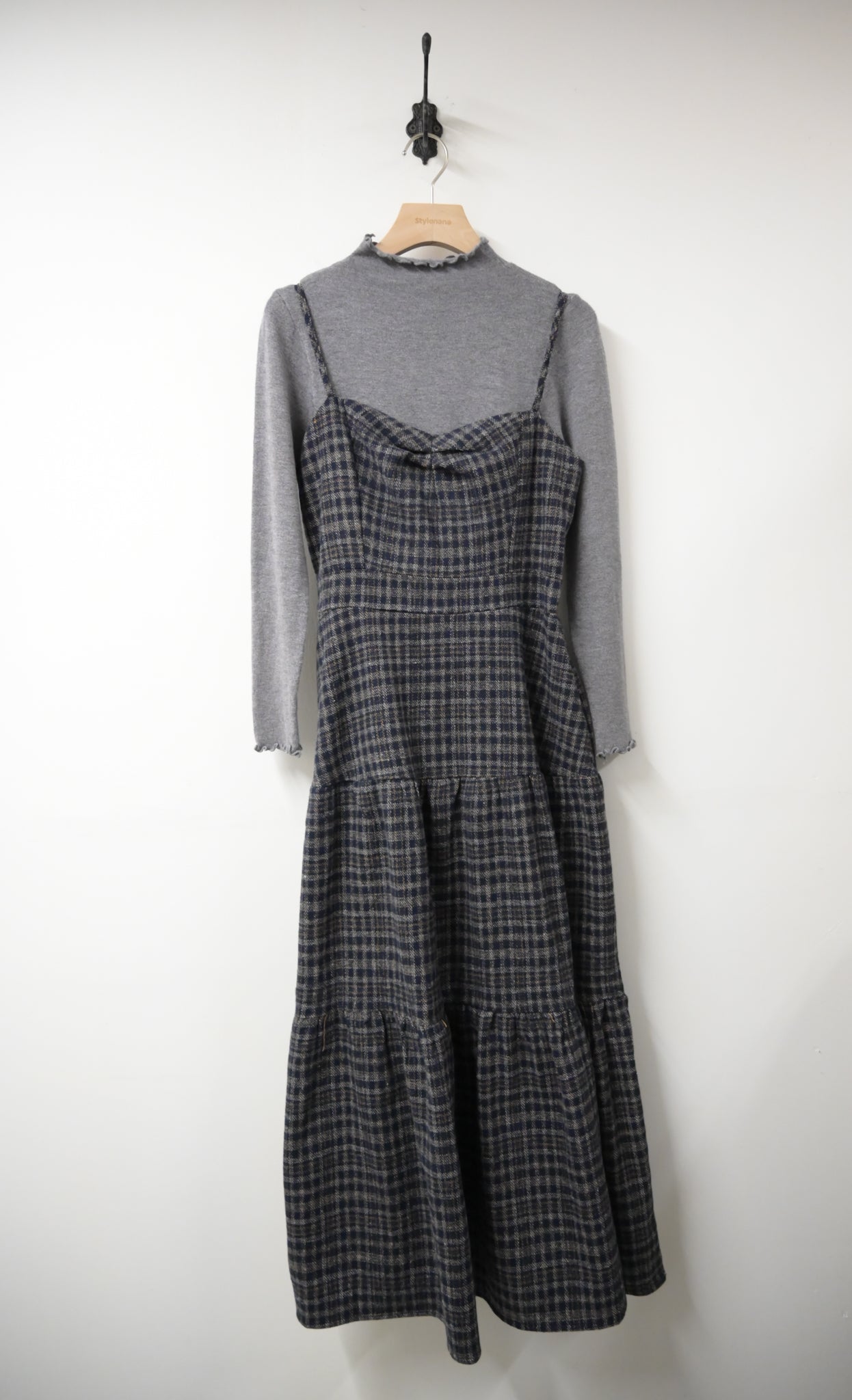 秋冬・厚格仔長裙配幼針織彈性上衣SET 2色入 1W61126
