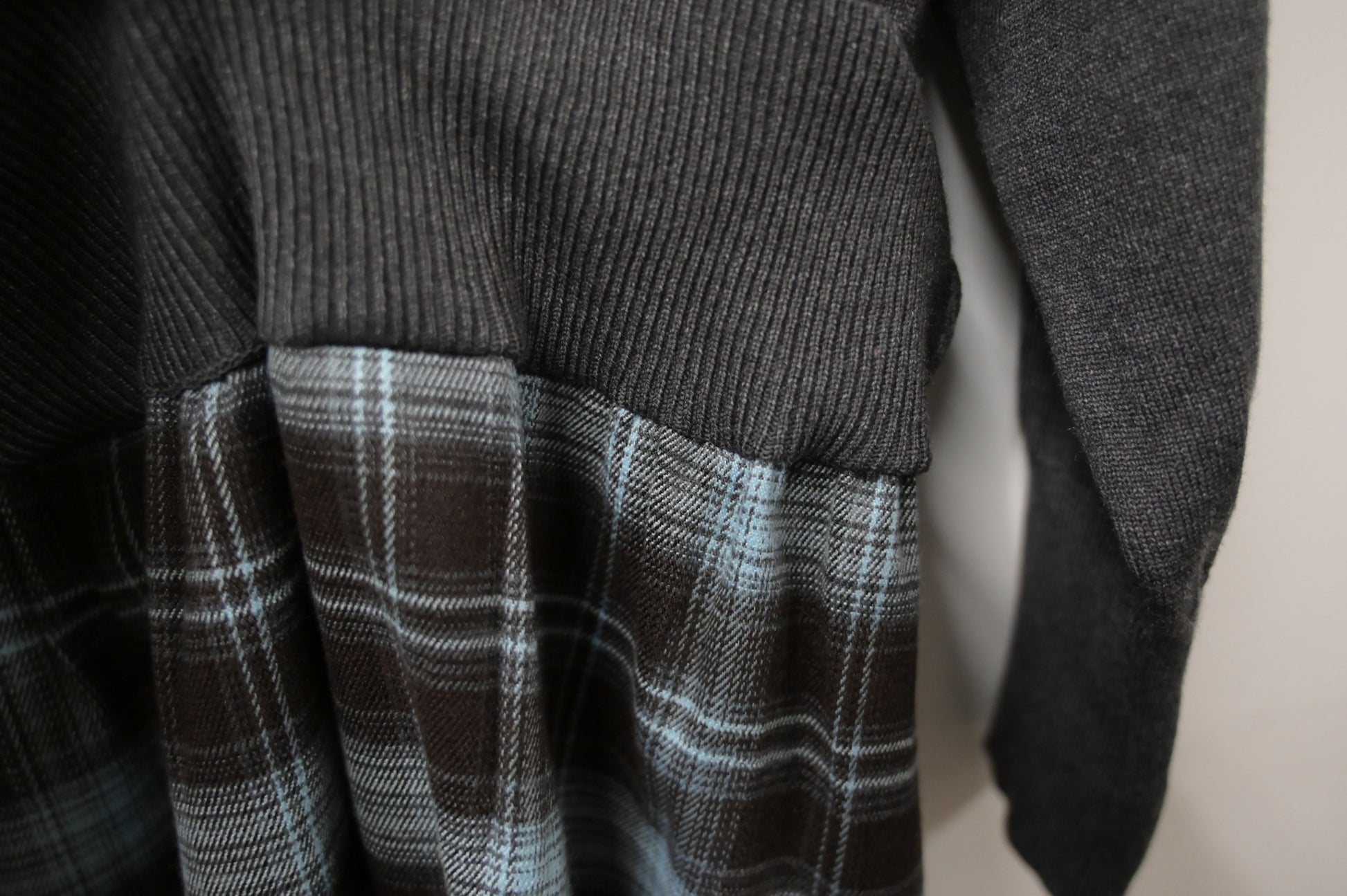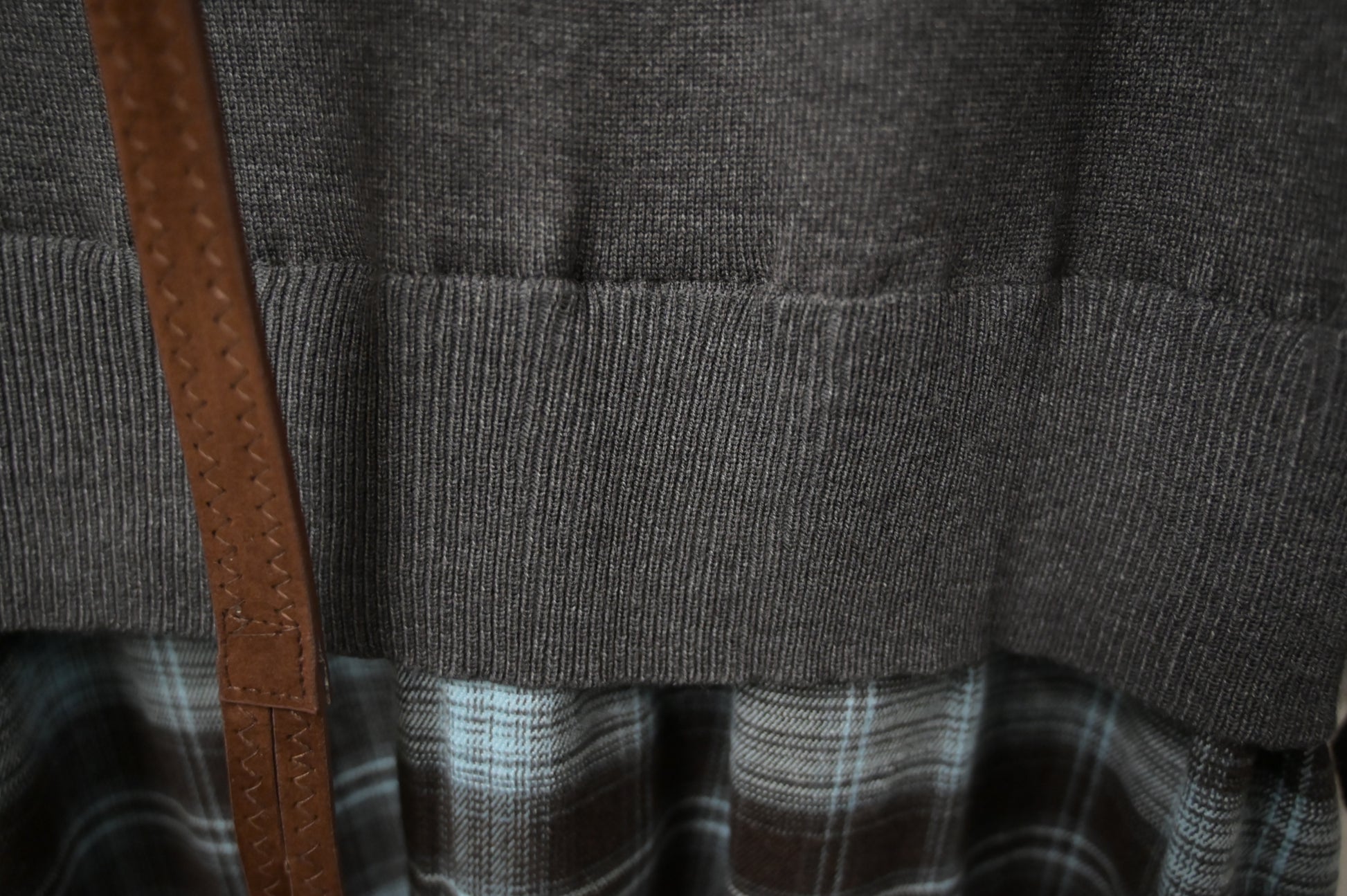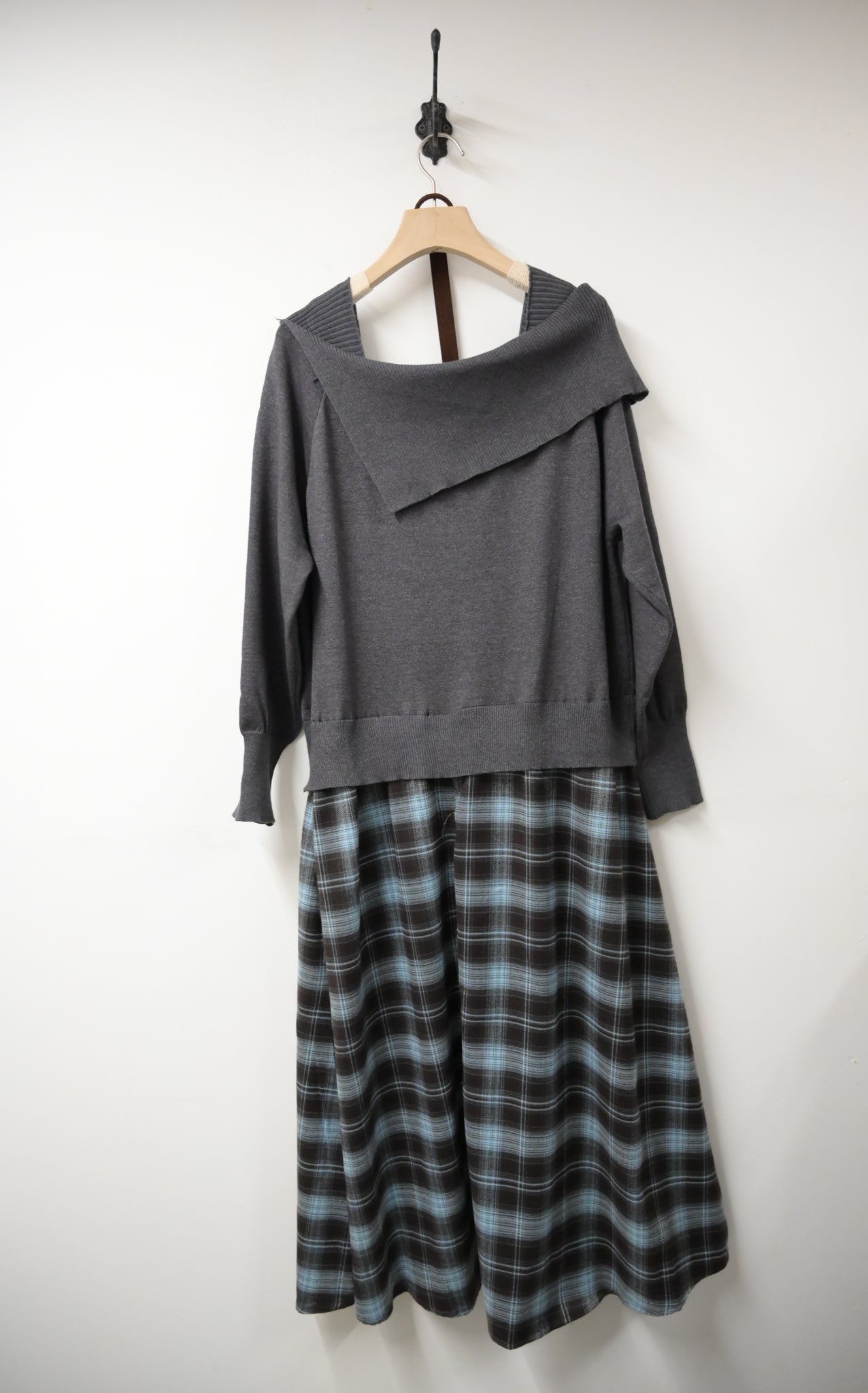 秋冬・反領針織拼接格仔寬鬆長裙連belt 2色入 1W61127