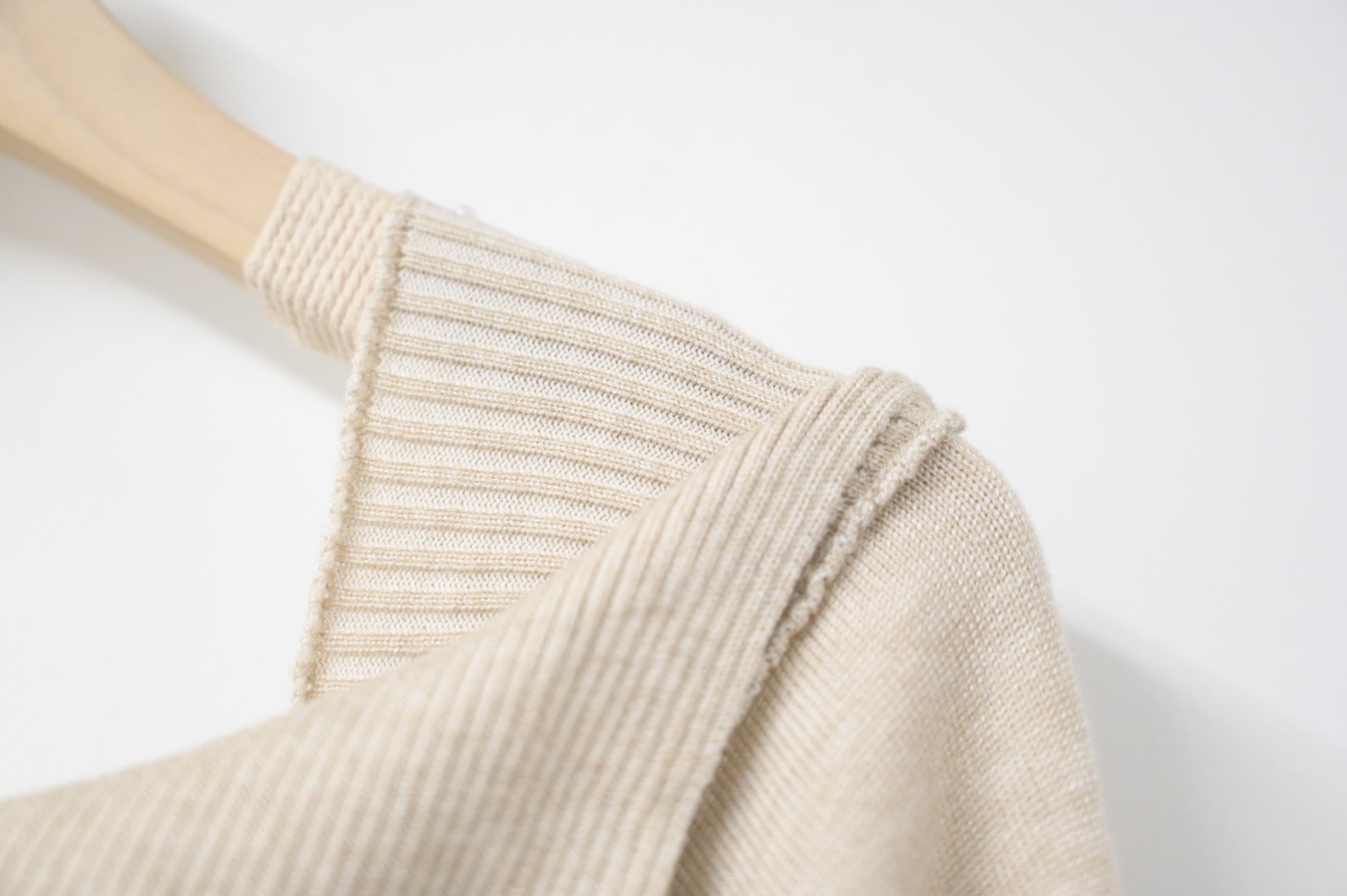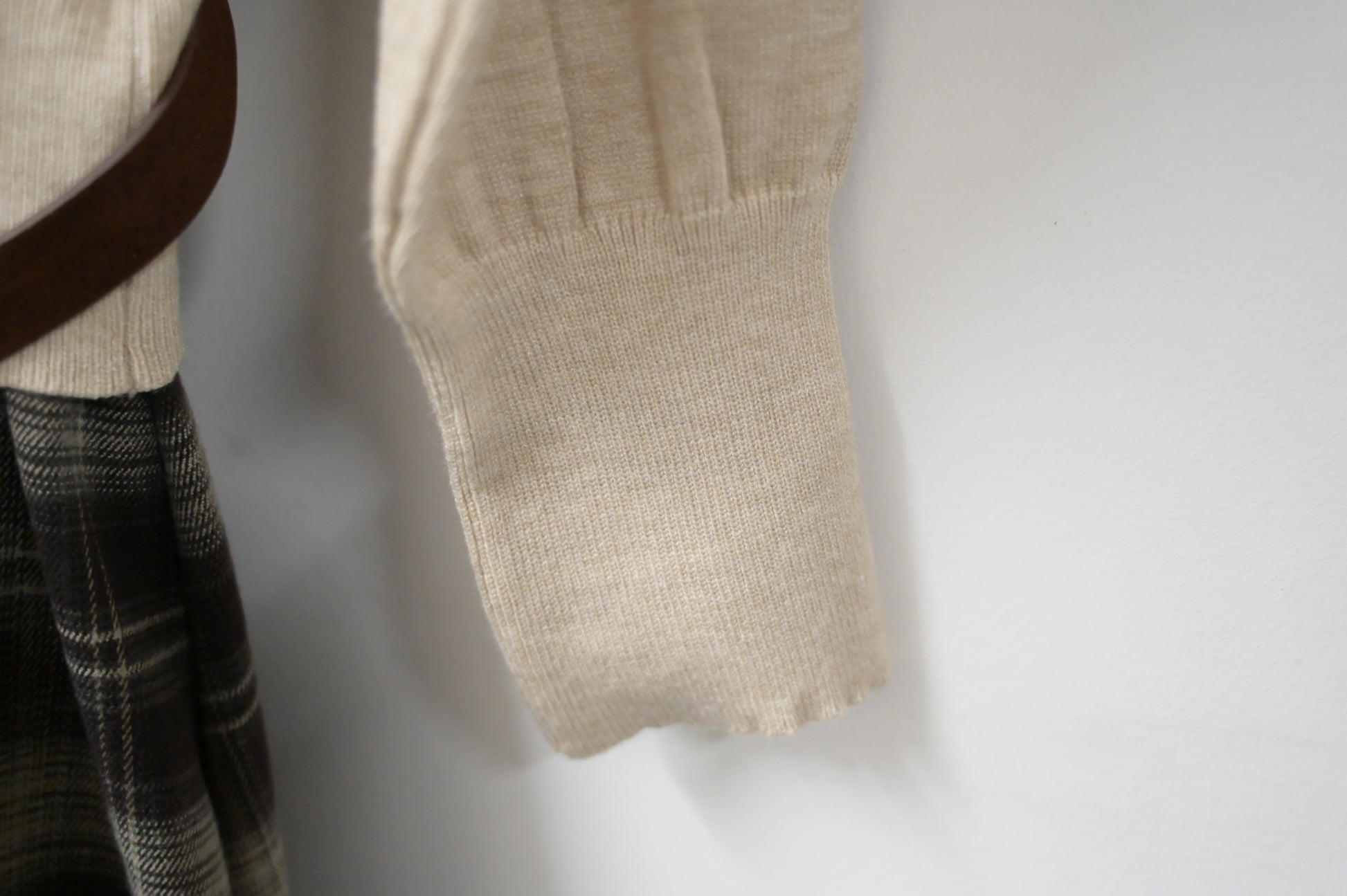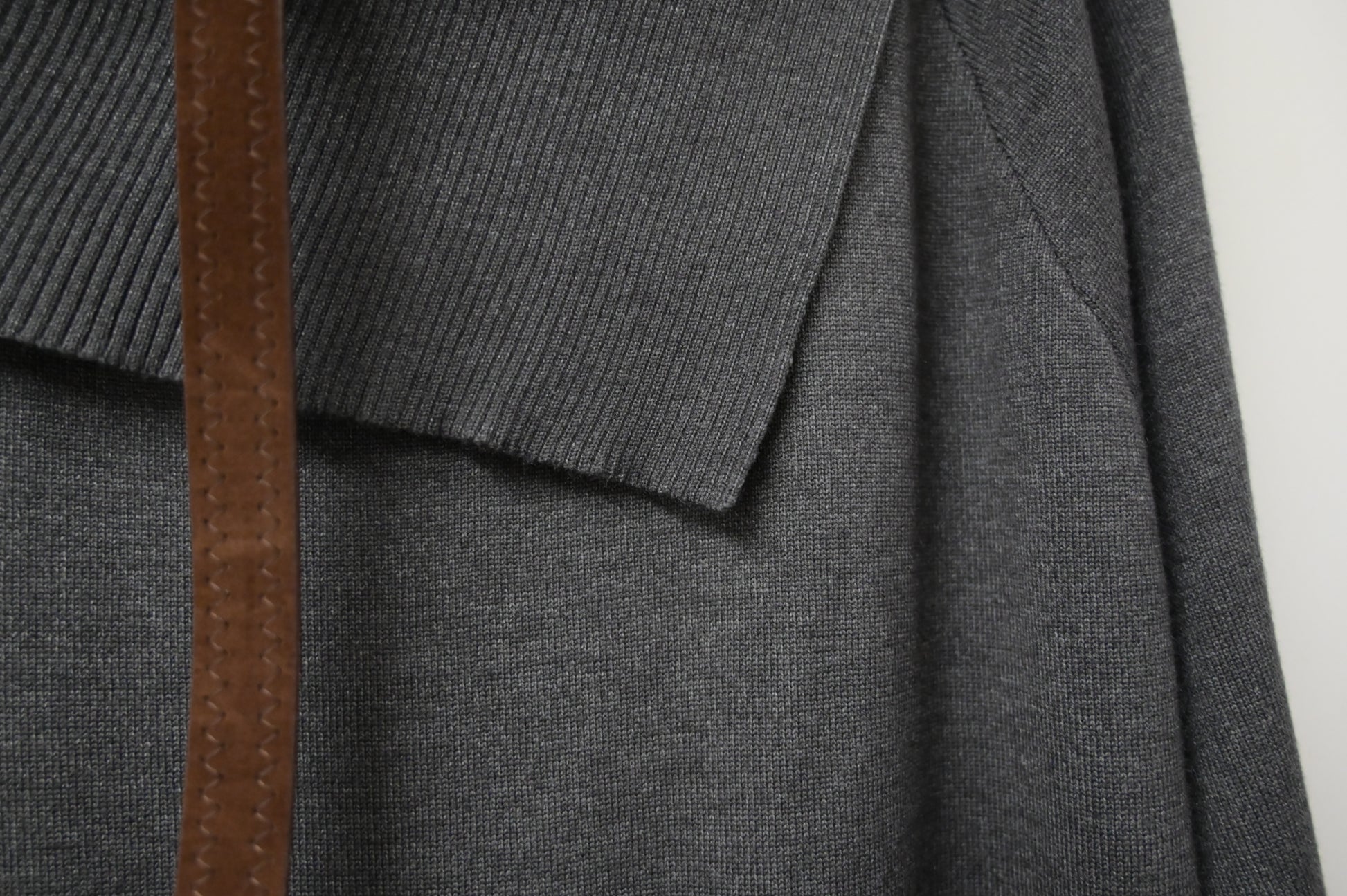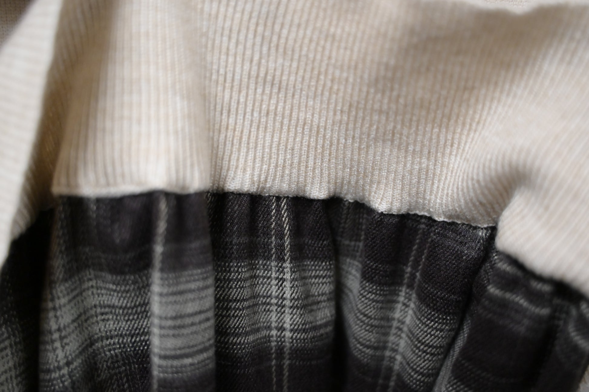 秋冬・反領針織拼接格仔寬鬆長裙連belt 2色入 1W61127