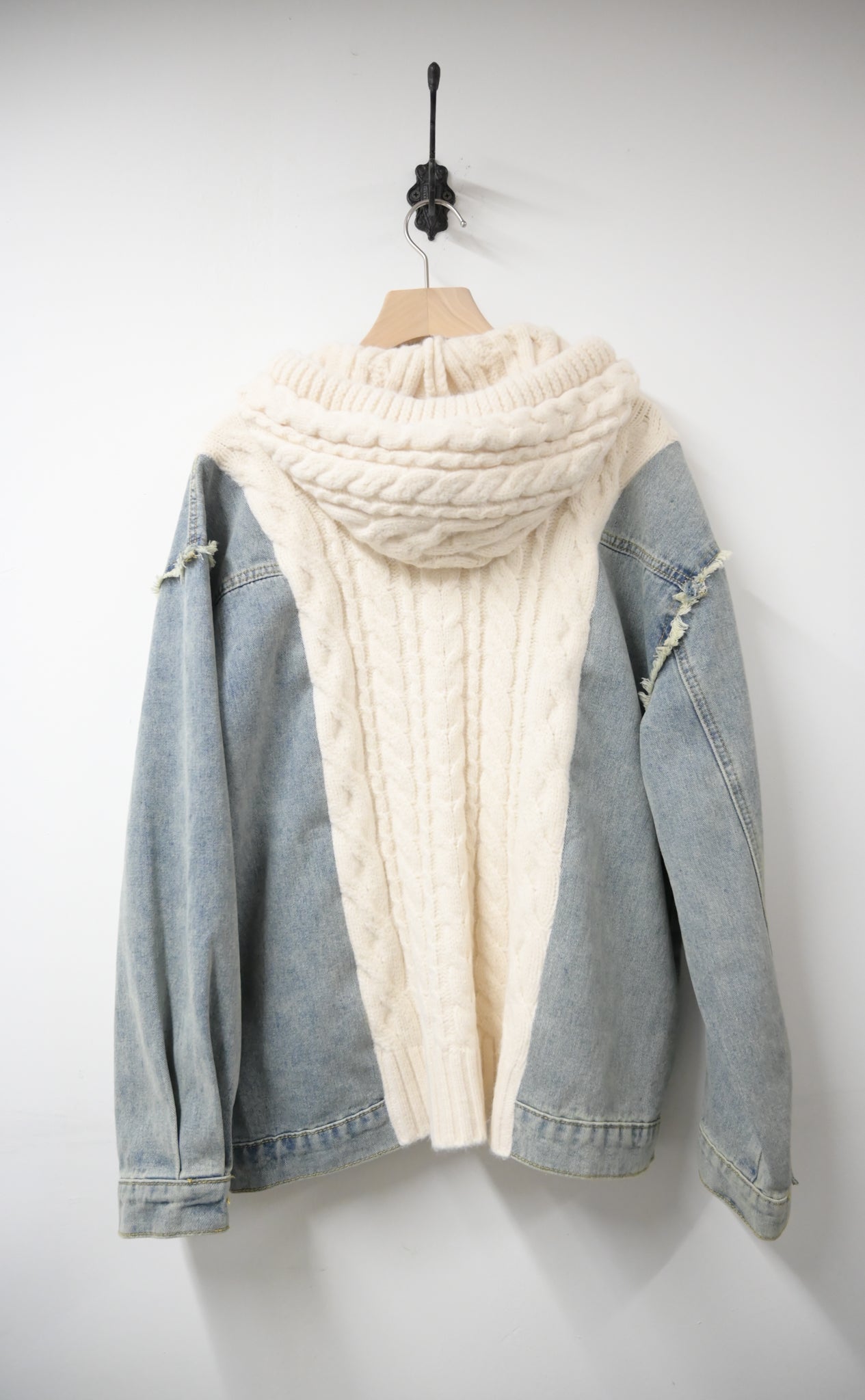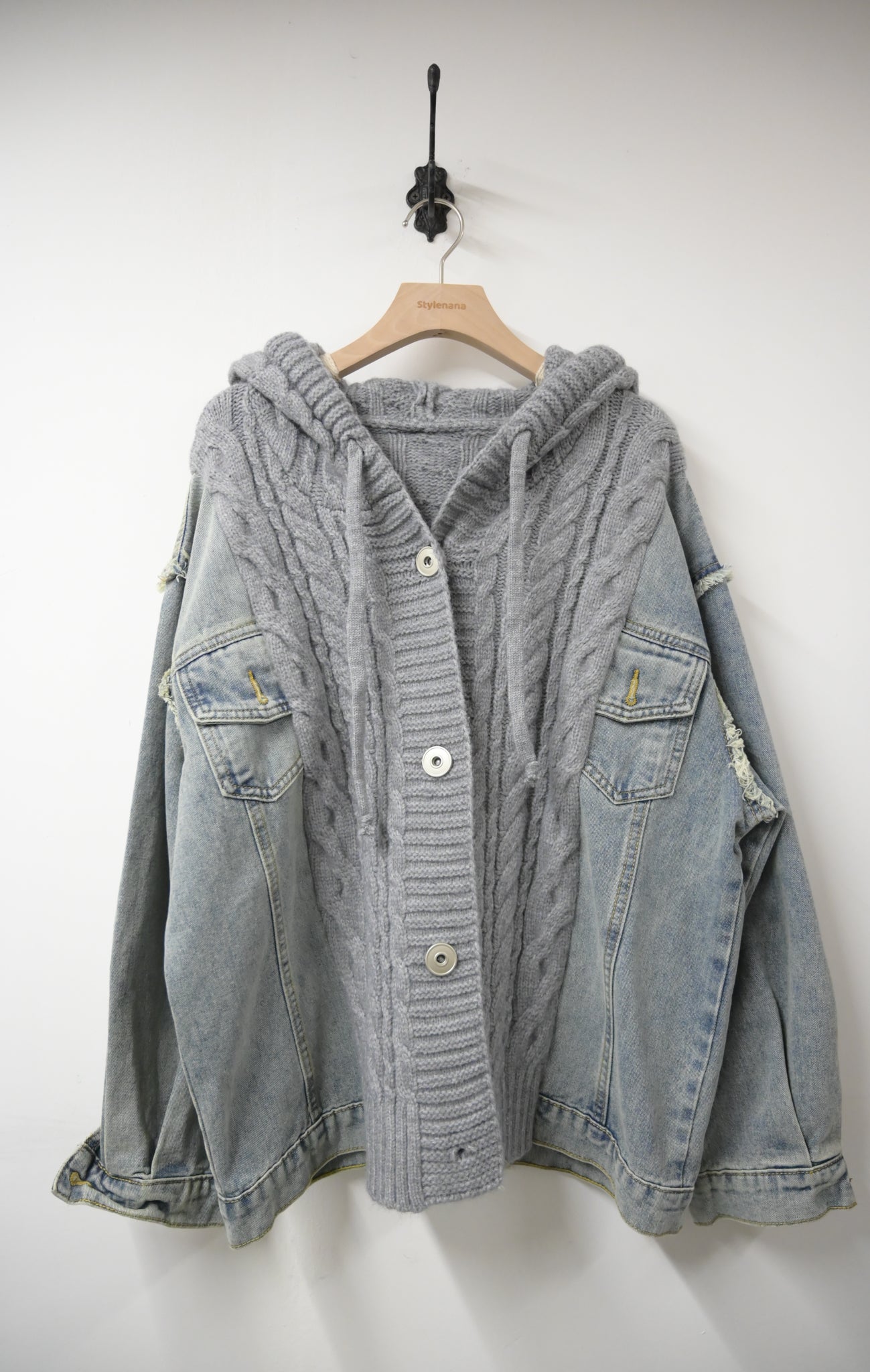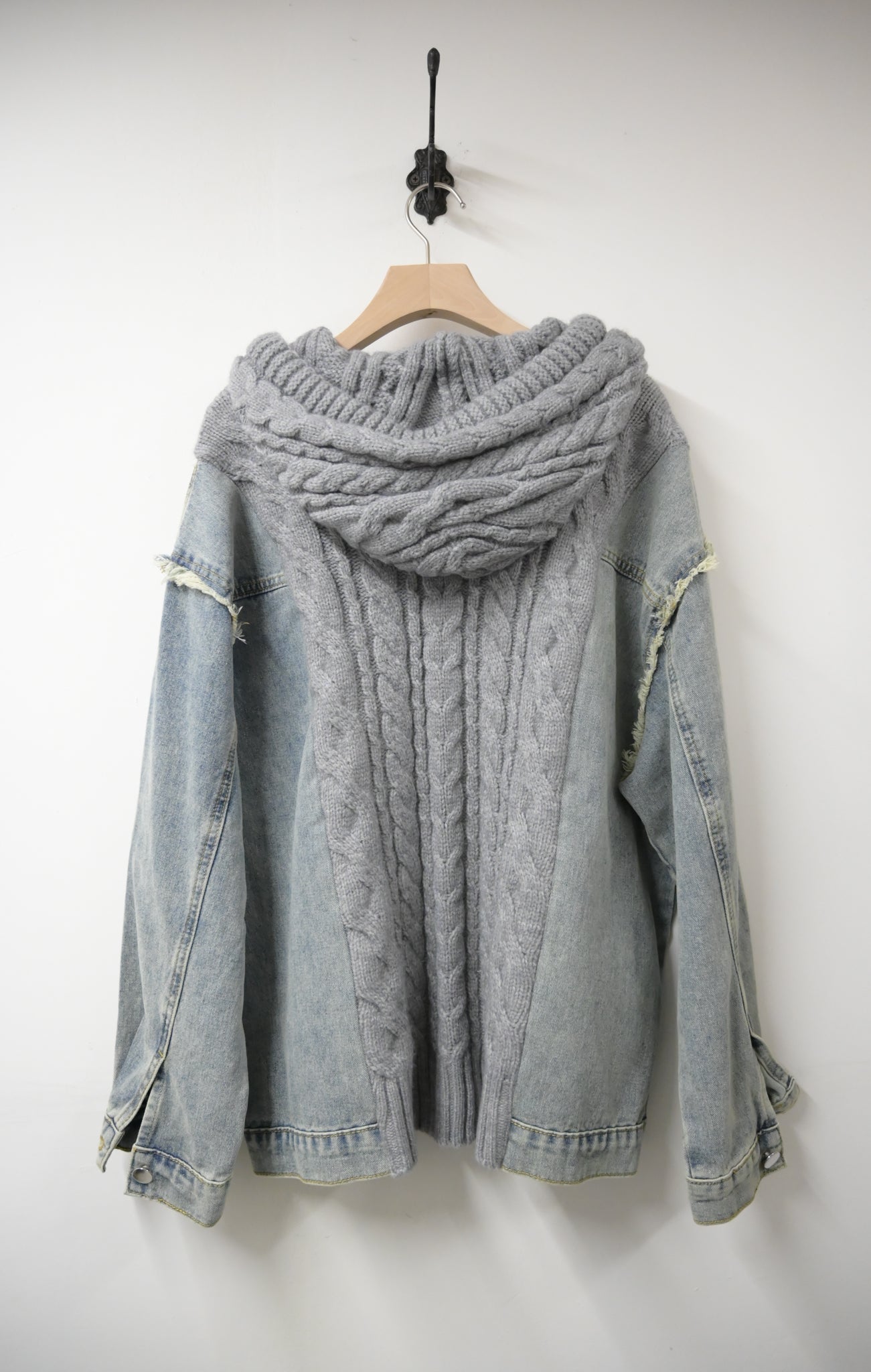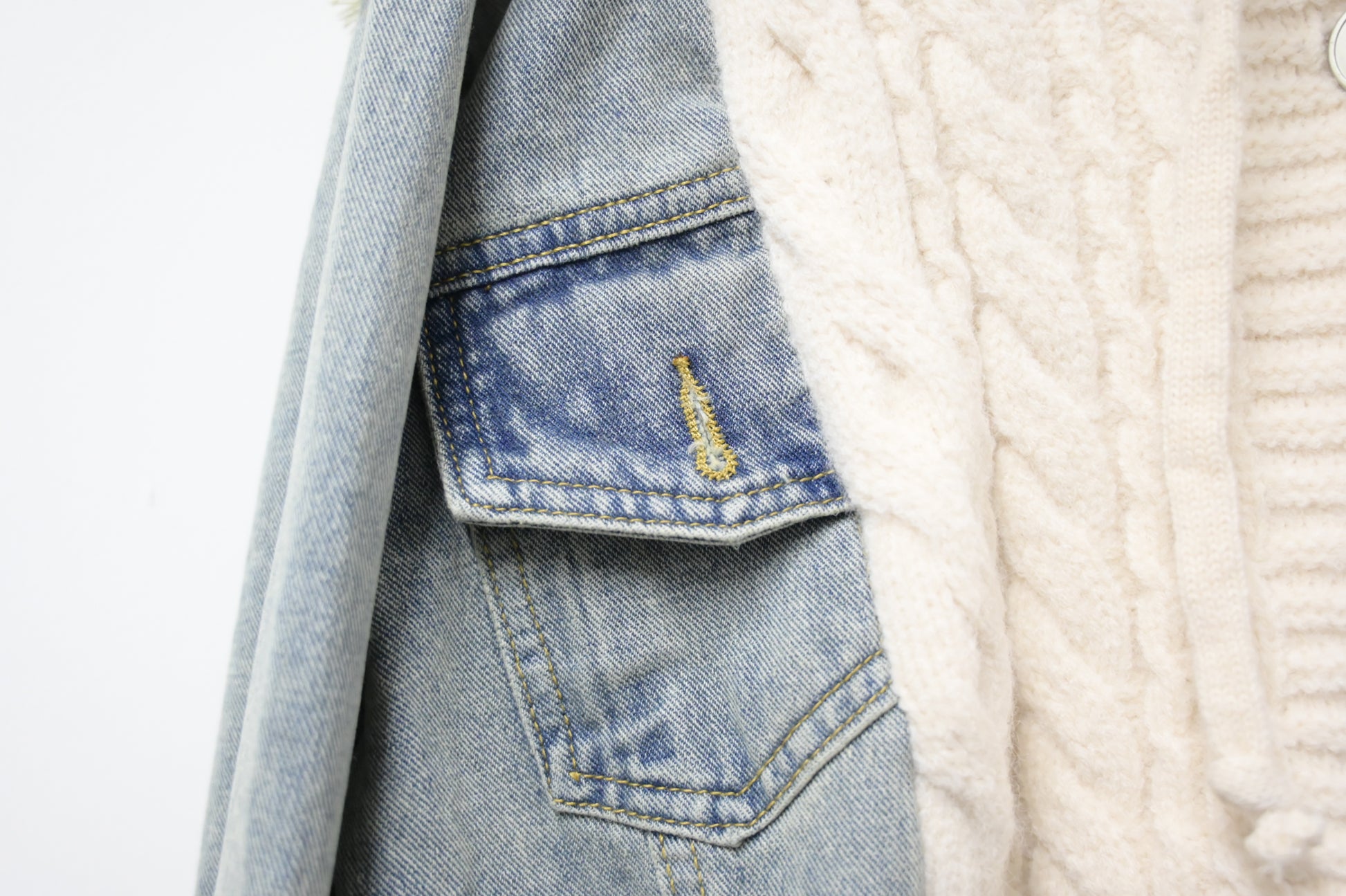 秋冬・柔軟冷衫拼接洗水牛仔外套 2色入 1W61147