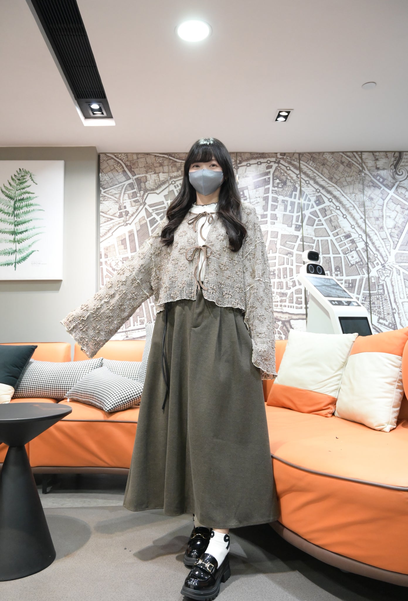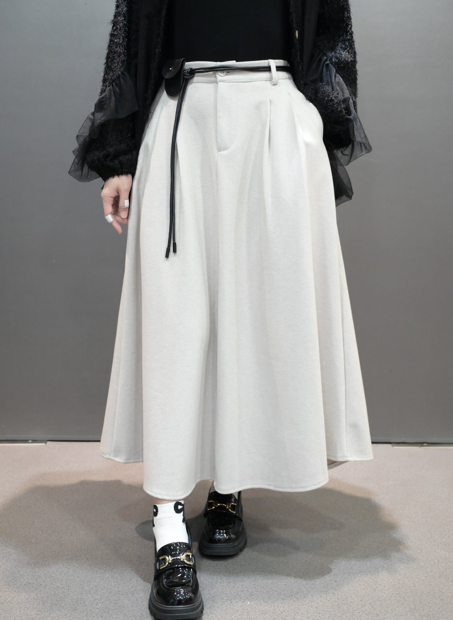 秋冬・保暖滑滑絨料半身裙連belt 2色入 1W61163