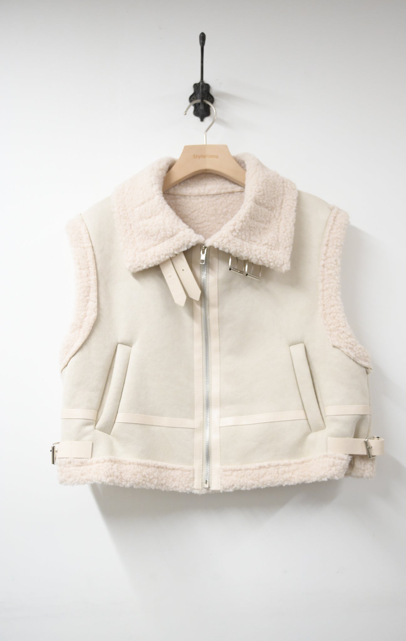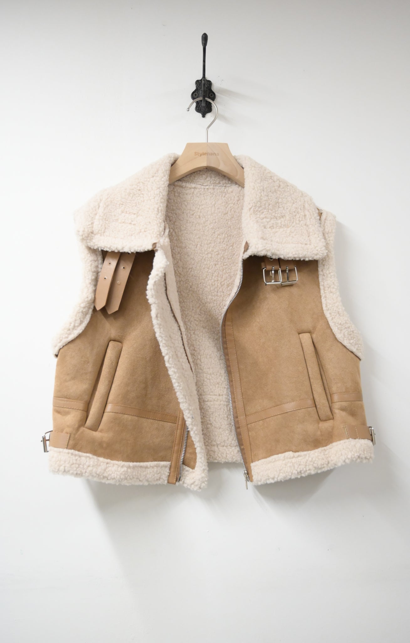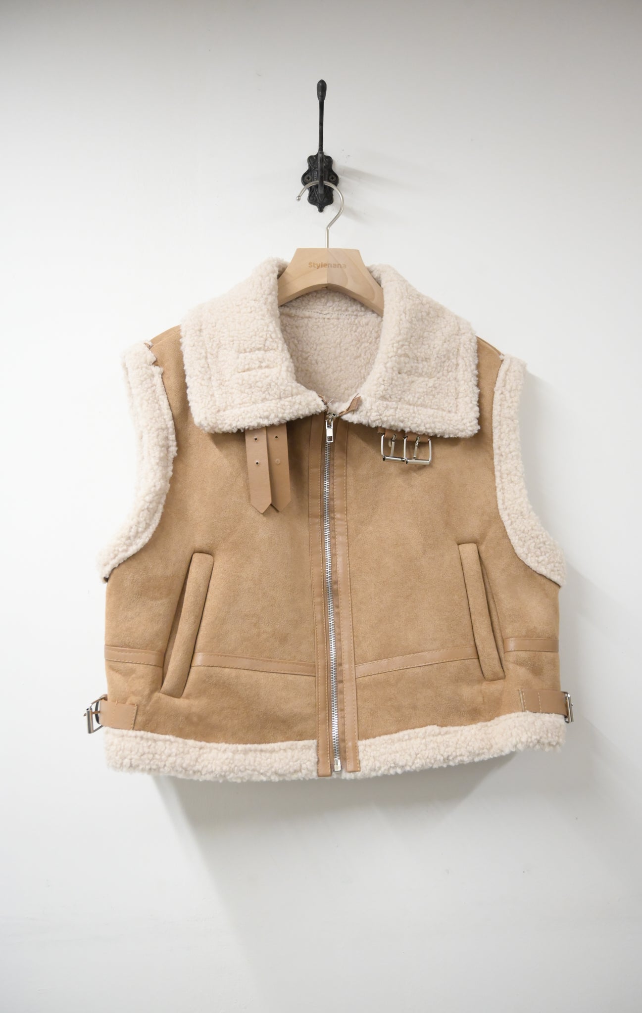 秋冬・麂皮羊羔毛無袖外套 2色入 1W61229