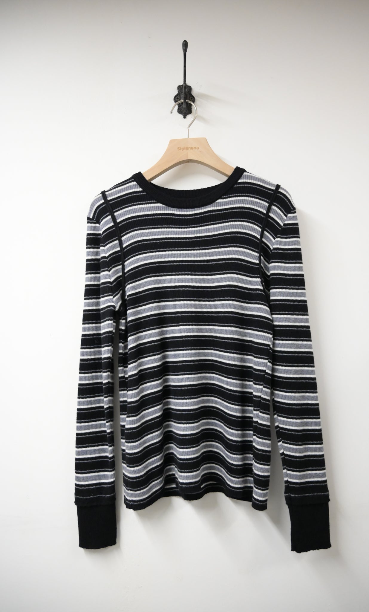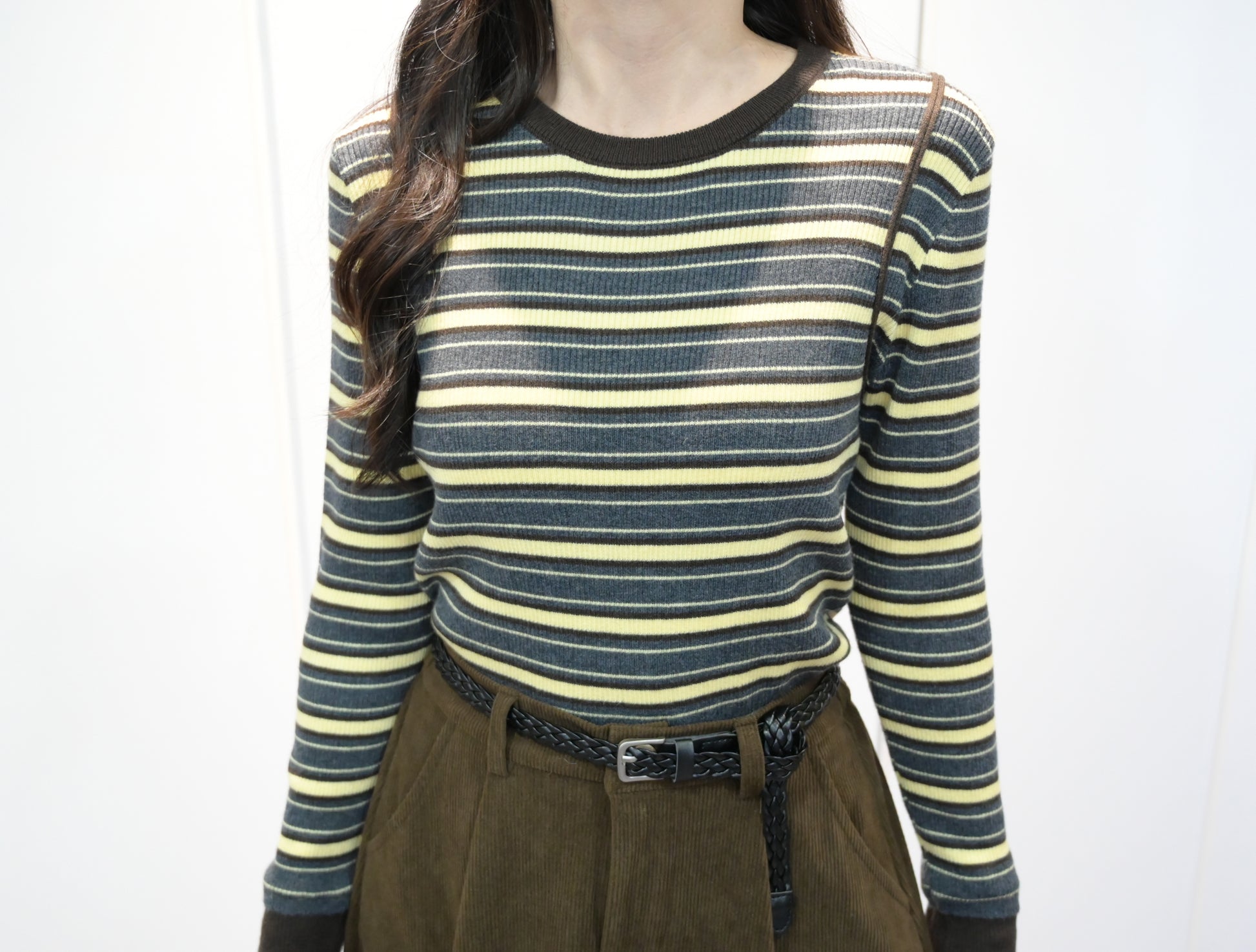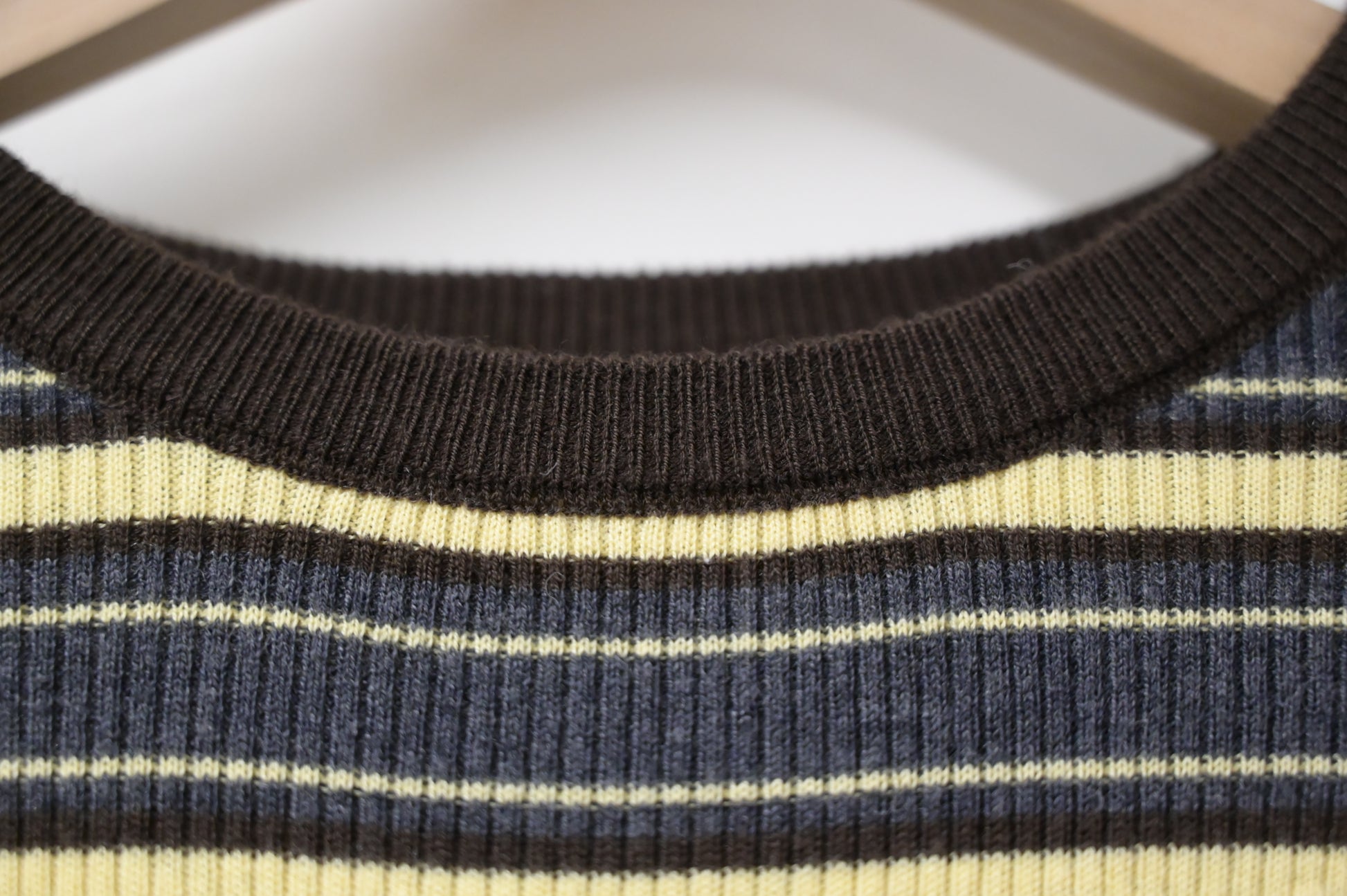 秋冬・超彈條紋撞色線針線上衣 2色入 1W61236