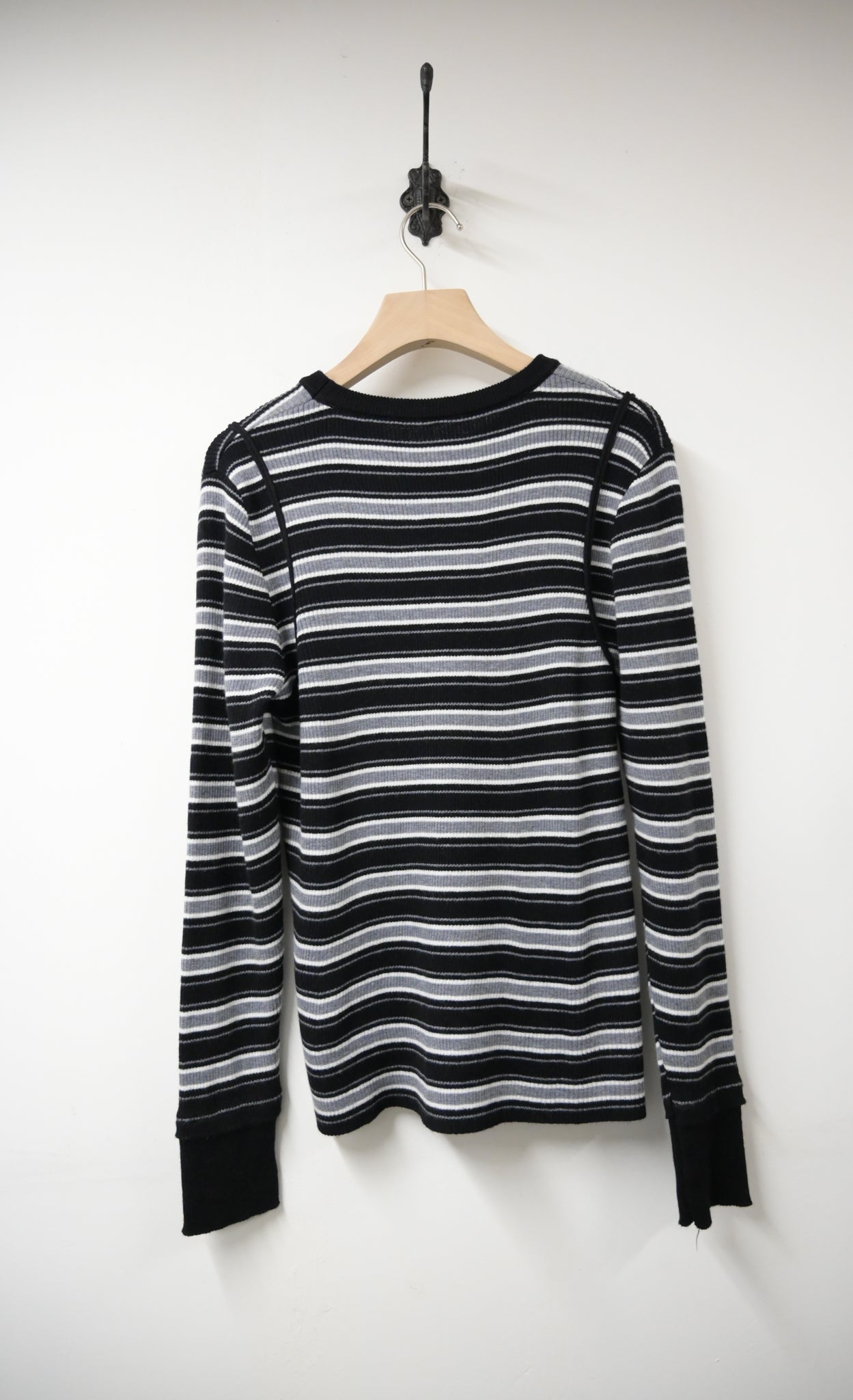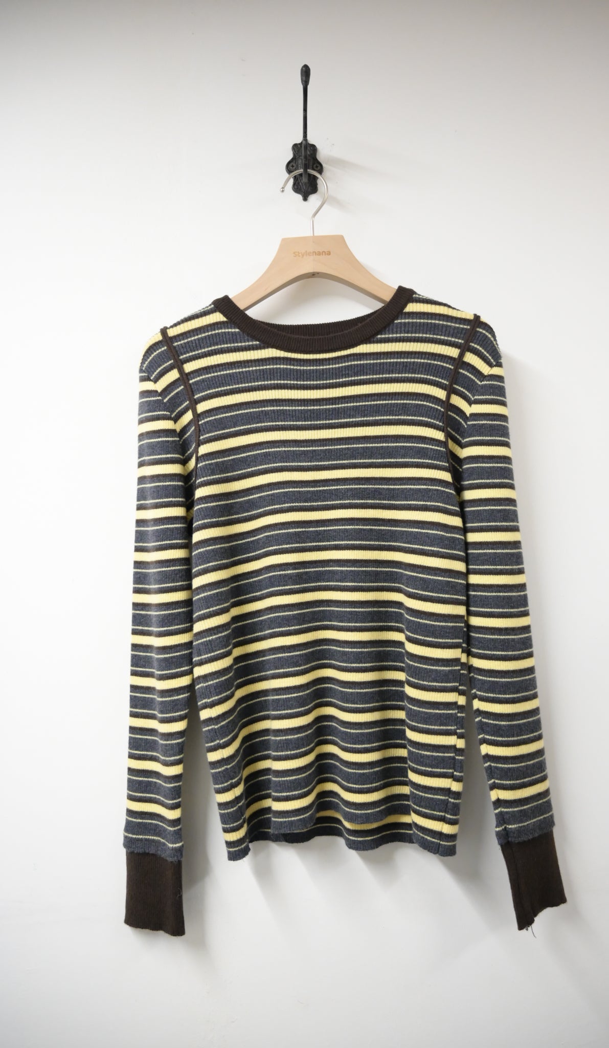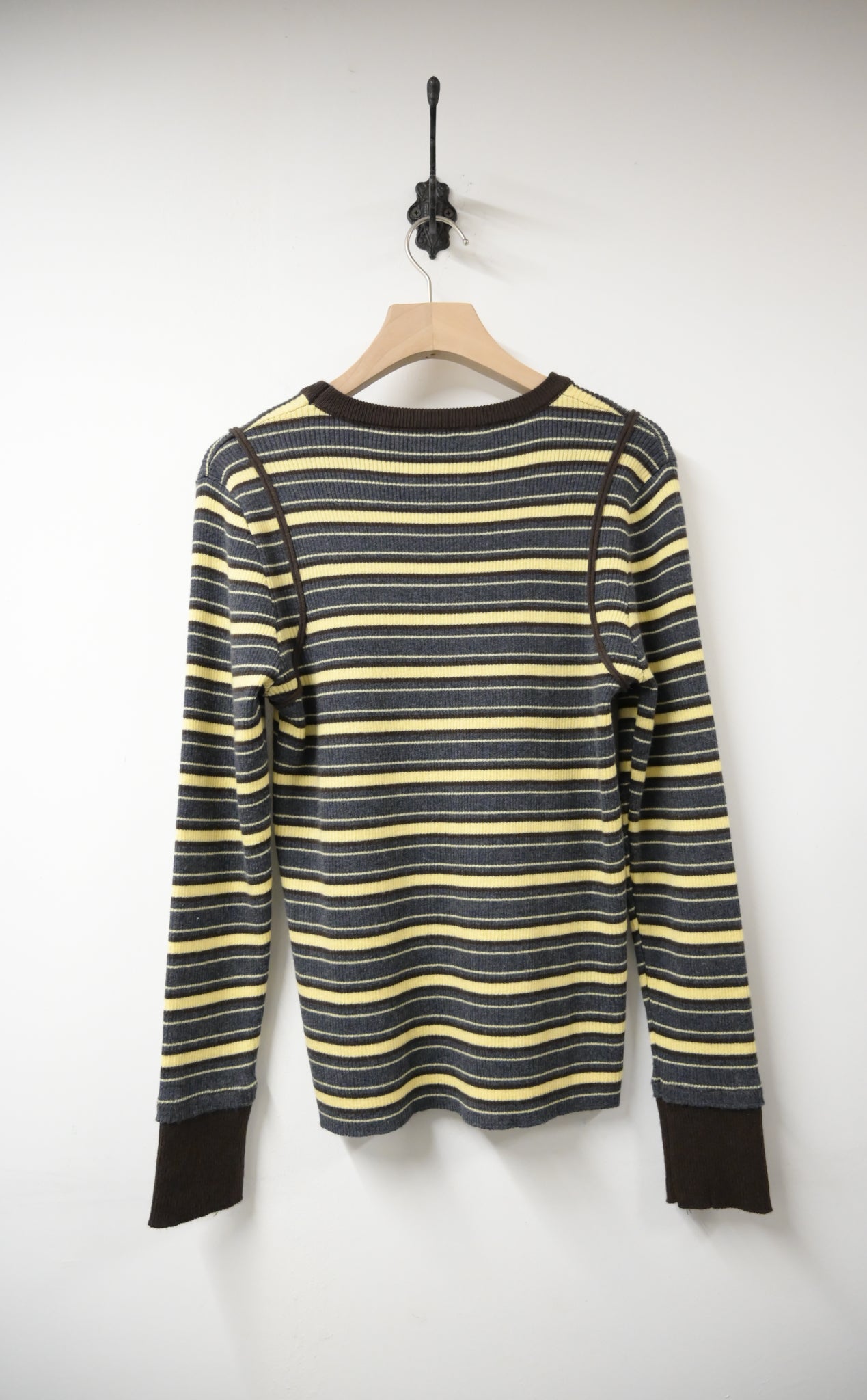 秋冬・超彈條紋撞色線針線上衣 2色入 1W61236