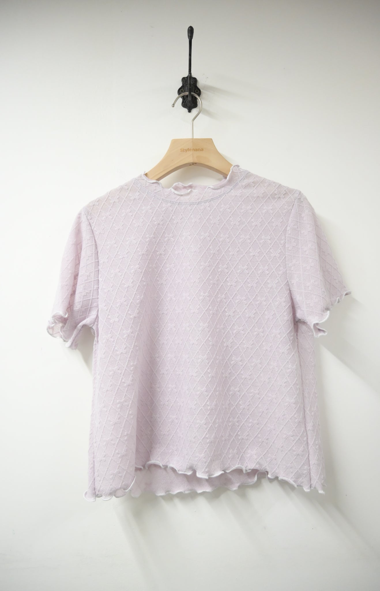 蝴蝶結暗紋捲捲邊上衣 4色入 S10838