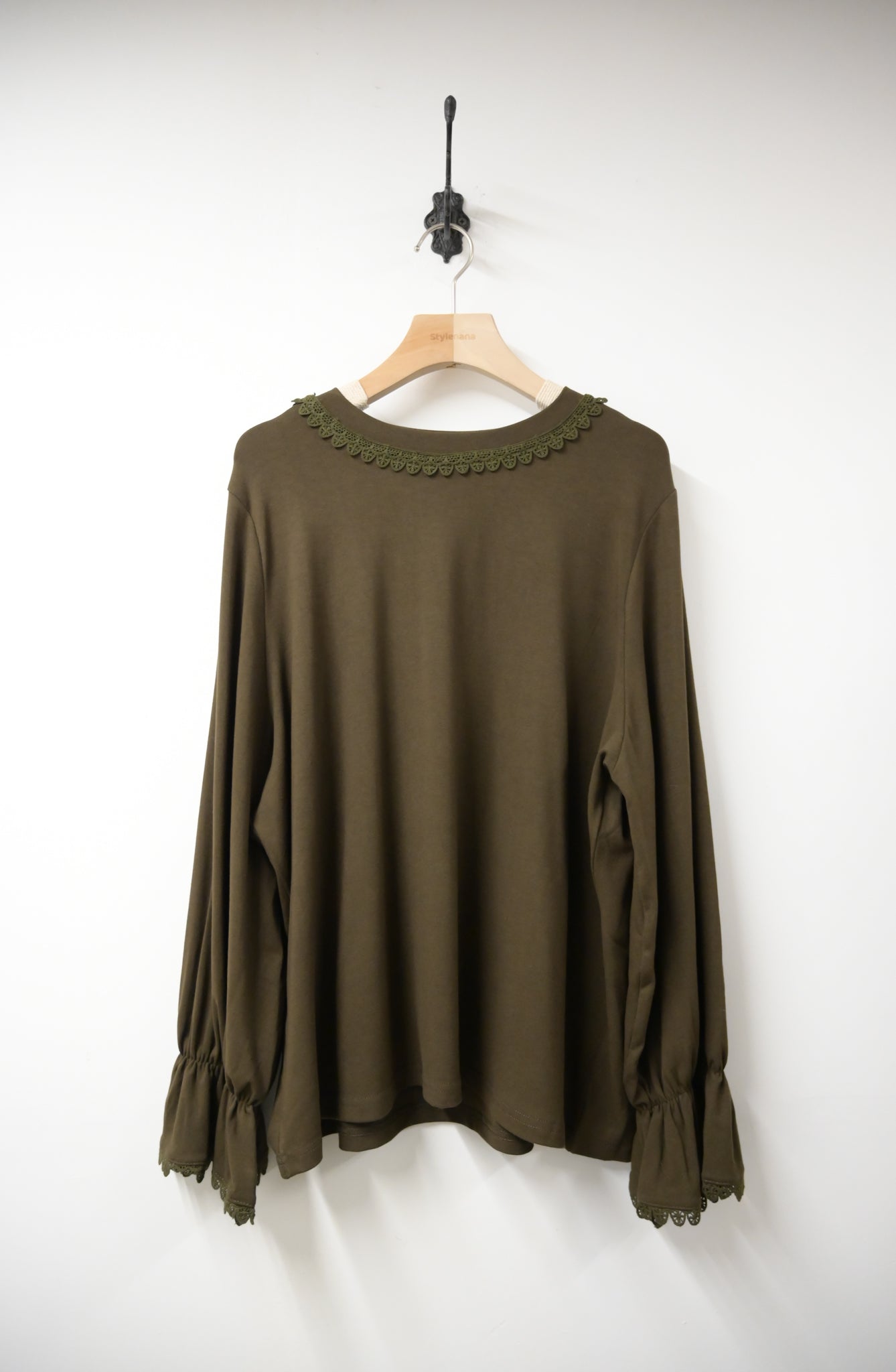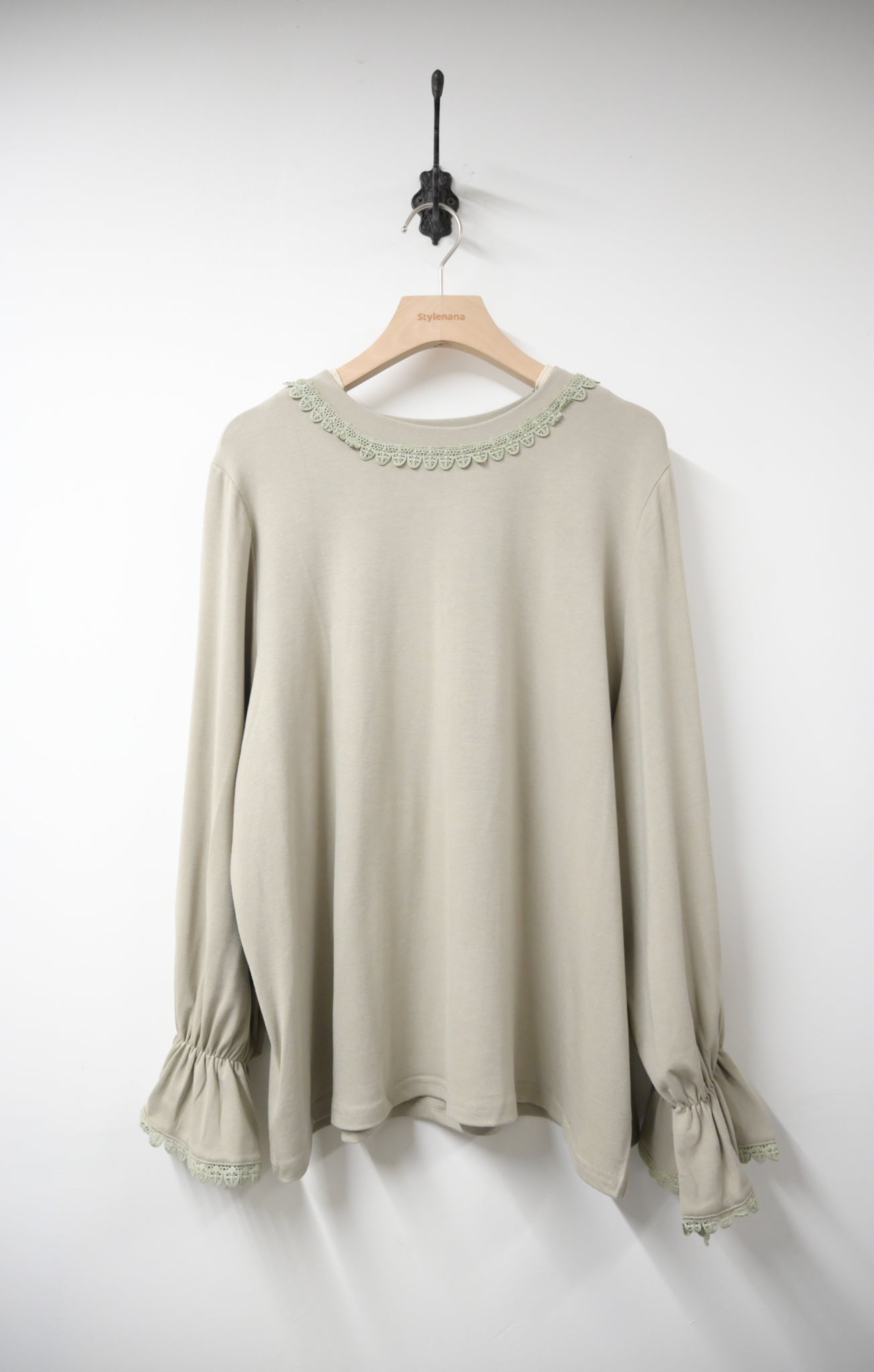 新色入~鑲邊喇叭手袖棉質上衣 3色入 W10108